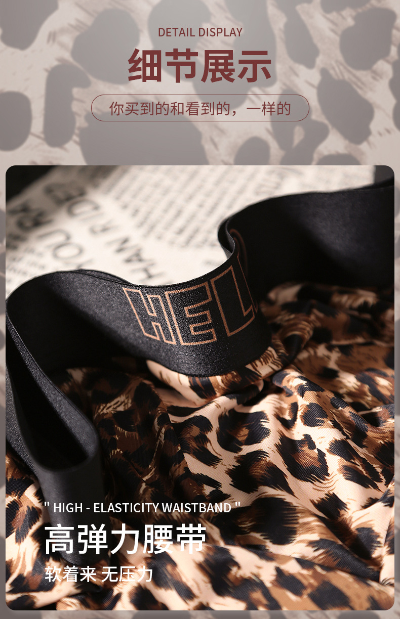 여름 남성 속옷, 아이스 실크, 시원하고 속건성, 섹시한 레오파드 프린트, 고급 럭셔리 미드 웨이스트, 남성용 편안한 사각형 복서 팬티스토어 가기