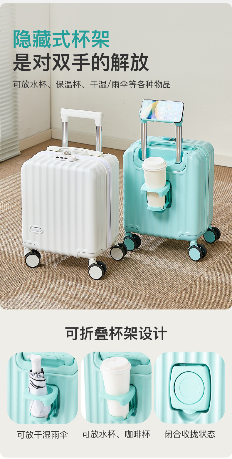 수하물 케이스 14 인치 트롤리 케이스 봄과 가을 항공 탑승 내마모성 유니버설 휠 음소거 가방 조명