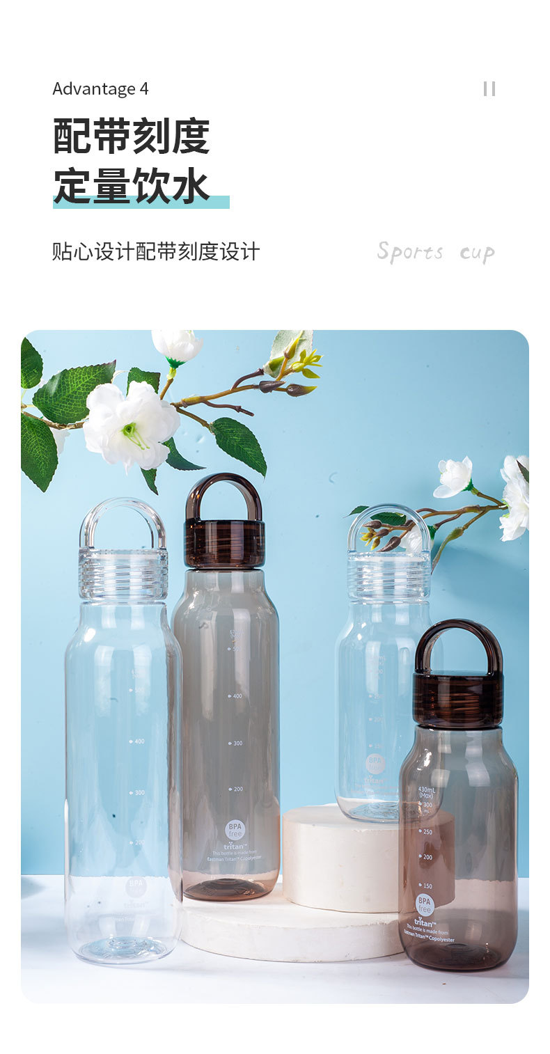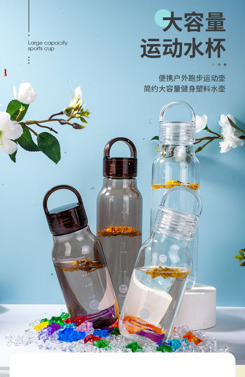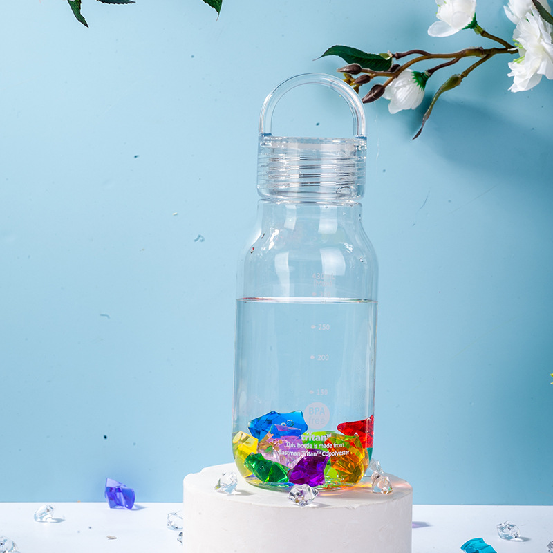 430ml 높은 색 투명한 트리탄 물 컵 휴대용 스포츠 주전자 학생 플라스틱 초승달 컵 도매스토어 가기