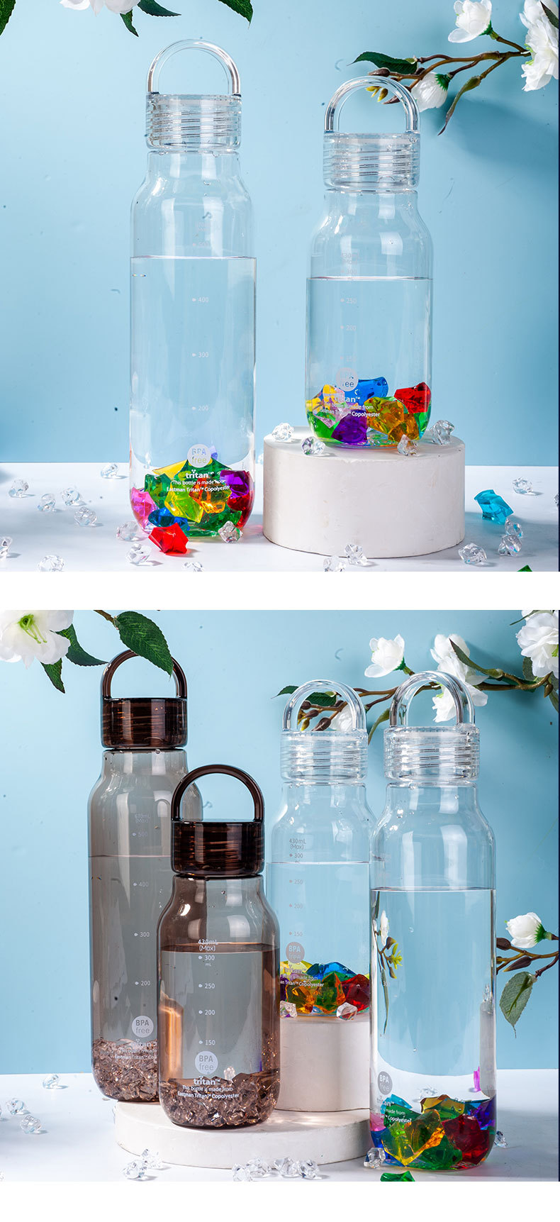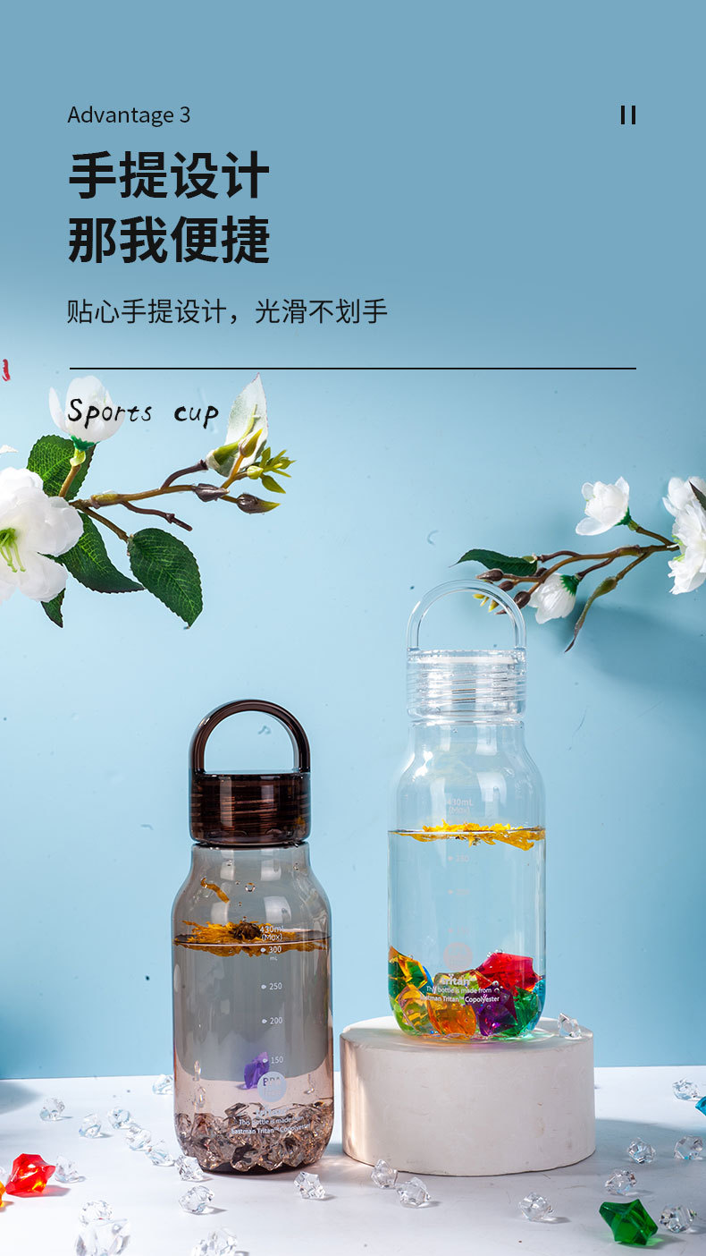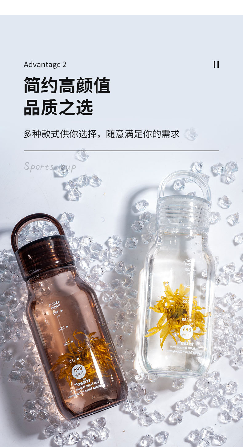430ml 높은 색 투명한 트리탄 물 컵 휴대용 스포츠 주전자 학생 플라스틱 초승달 컵 도매스토어 가기
