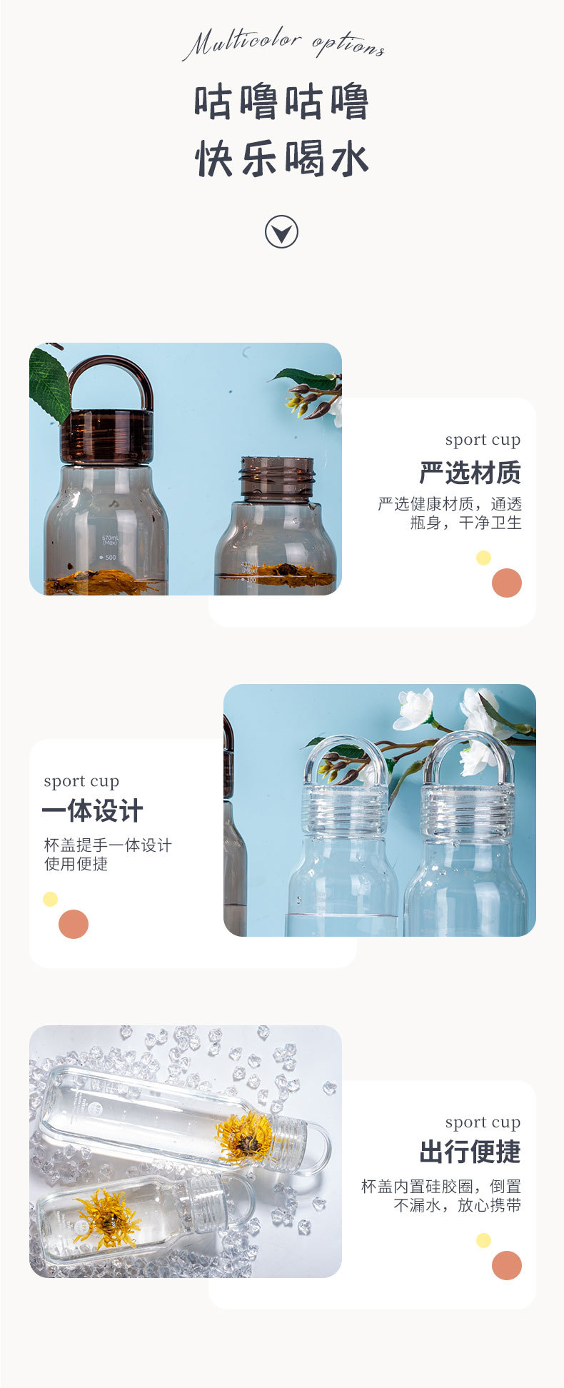 • 맞춤형 대비 색상 투명 컵 본체 + 커피 색상 뚜껑