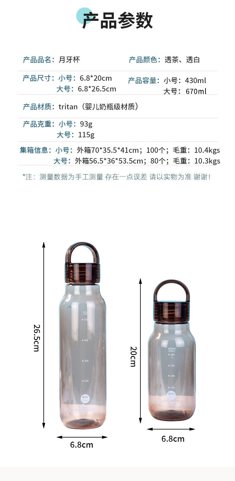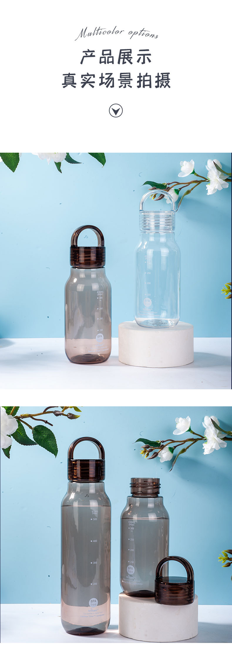 430ml 높은 색 투명한 트리탄 물 컵 휴대용 스포츠 주전자 학생 플라스틱 초승달 컵 도매