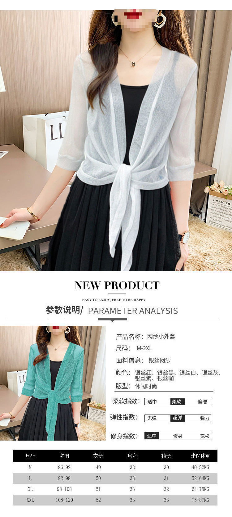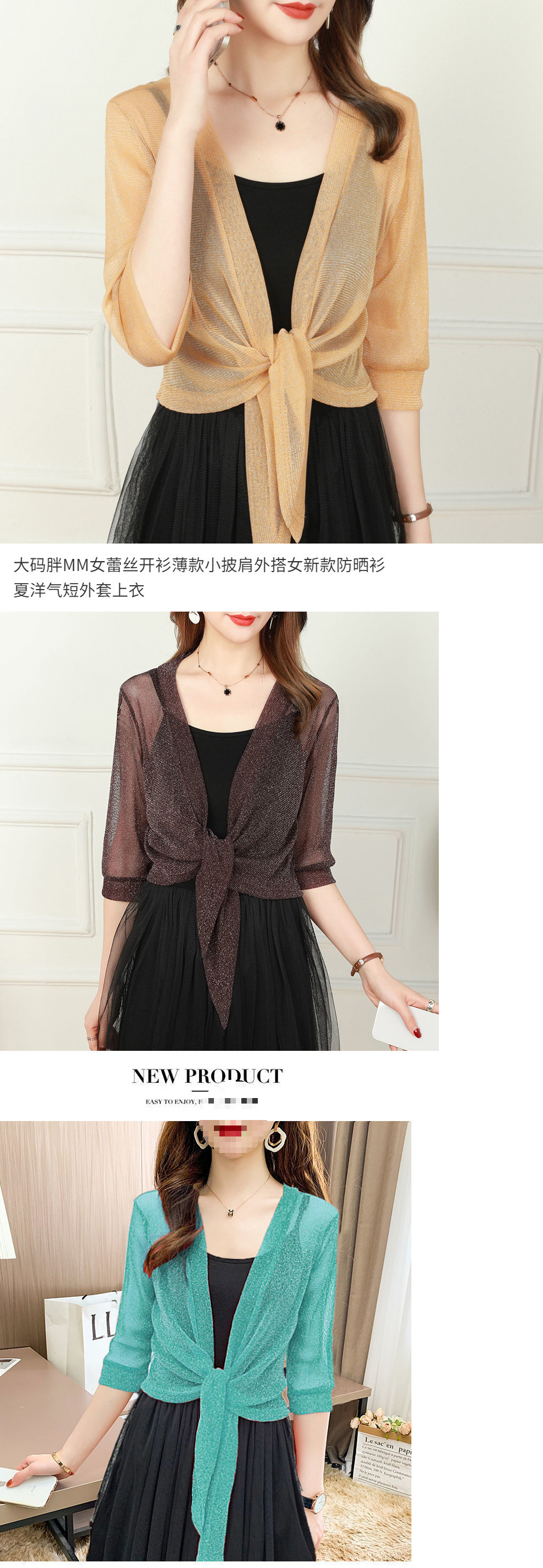 2024 년 여름 작은 목도리 코트 여자 카디건 메쉬 짧은 외부 플러스 사이즈 레이스 Waistle Shaple Outer