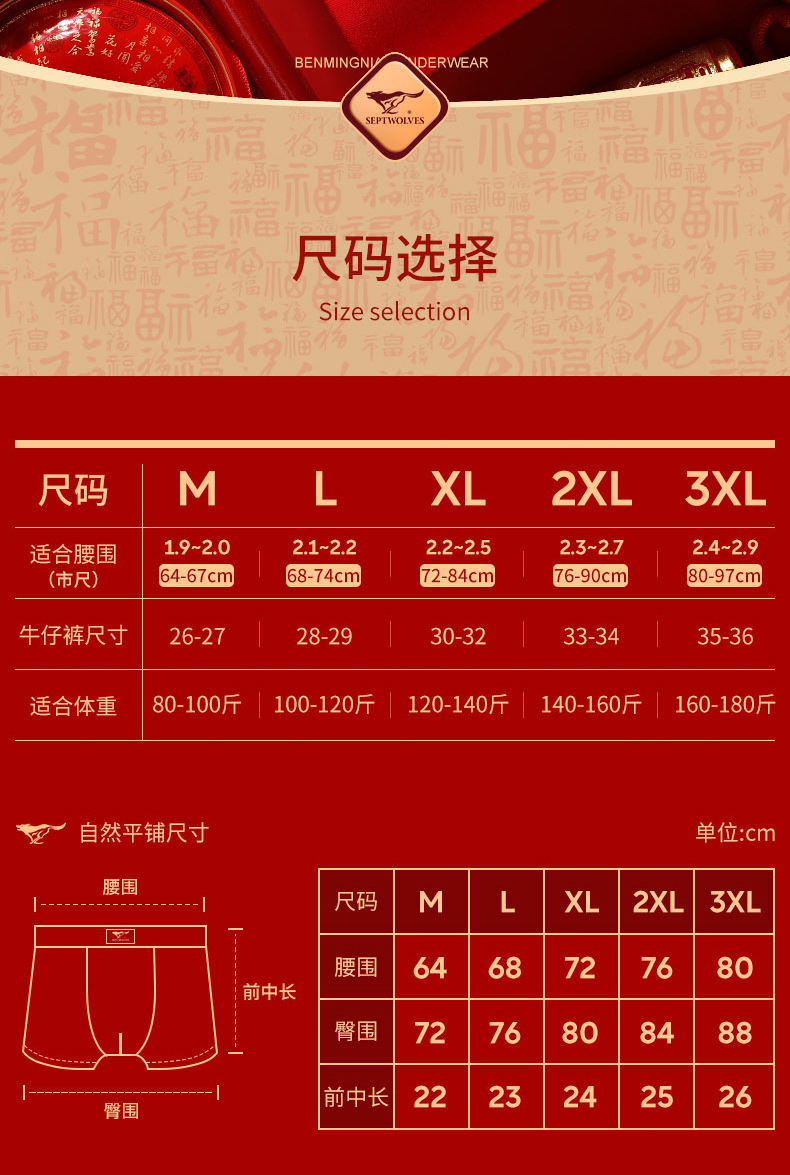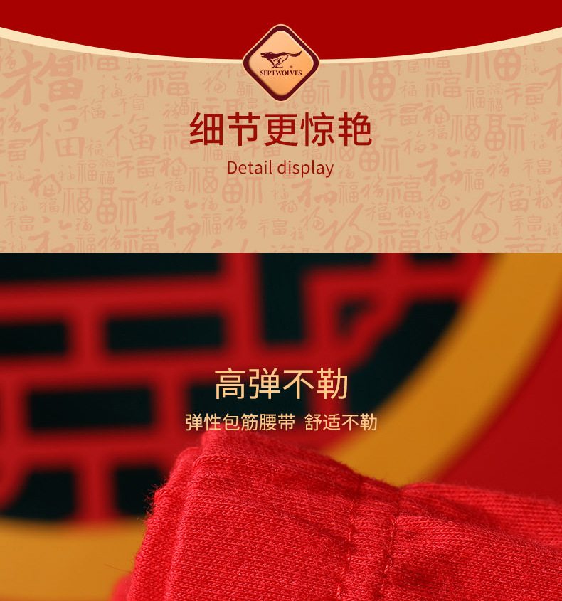 7 개의 늑대 속옷 남성용 순수 코튼 복서 바지 빅 레드 축제 웨딩 속옷 남성용 복서 바지 박스스토어 가기