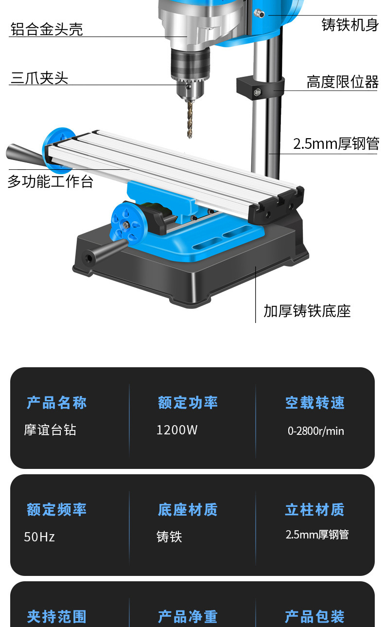 • 2단 감속 1200W + 중판 - 벤치 드릴 + 트위스트 드릴 13개 + 견고한 작업대