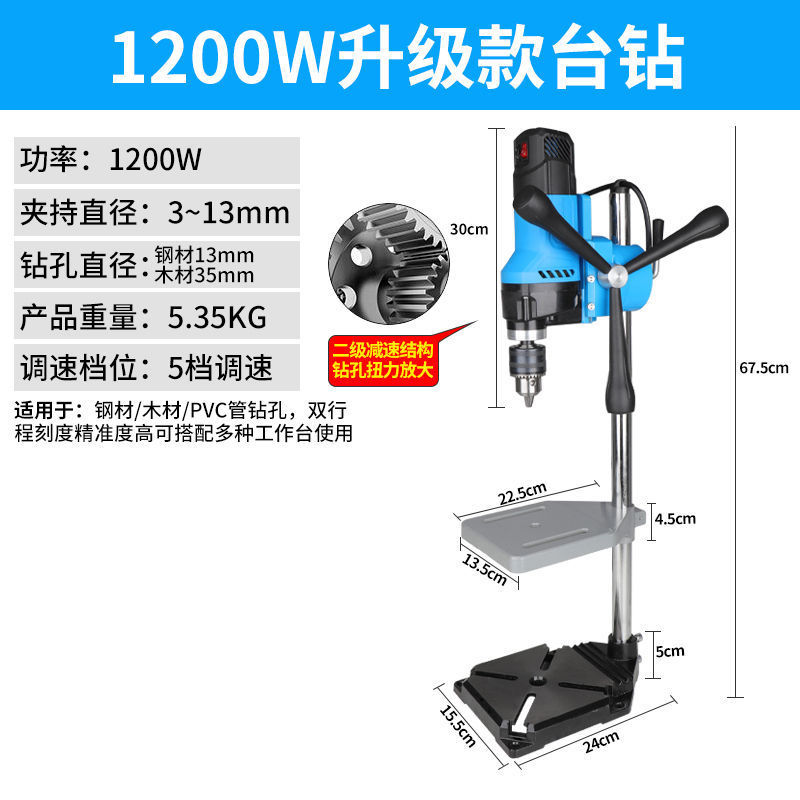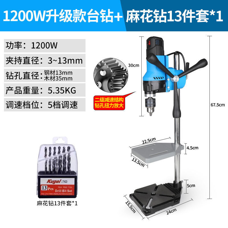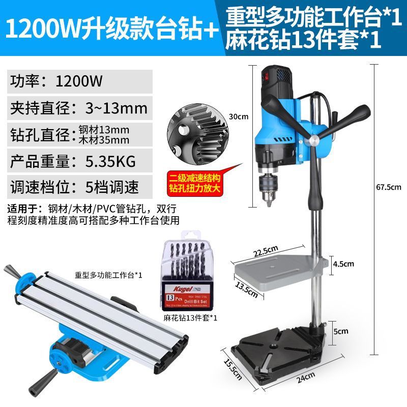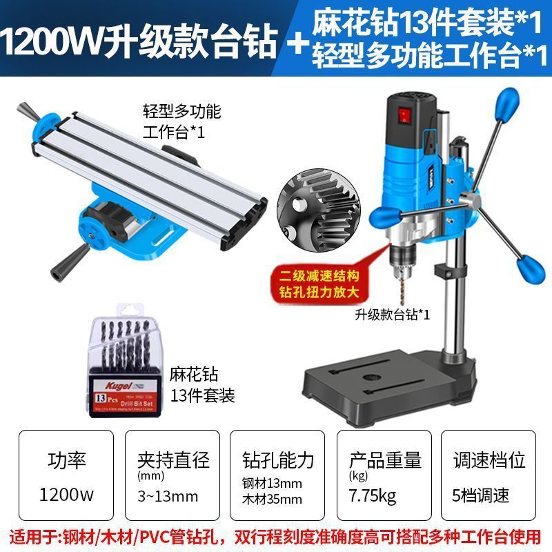 • 2단 감속 1200W 벤치 드릴 + 트위스트 드릴 13개 + 견고한 작업대