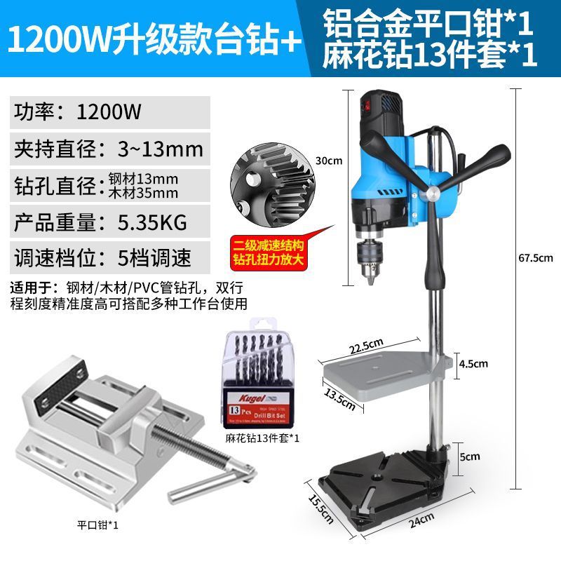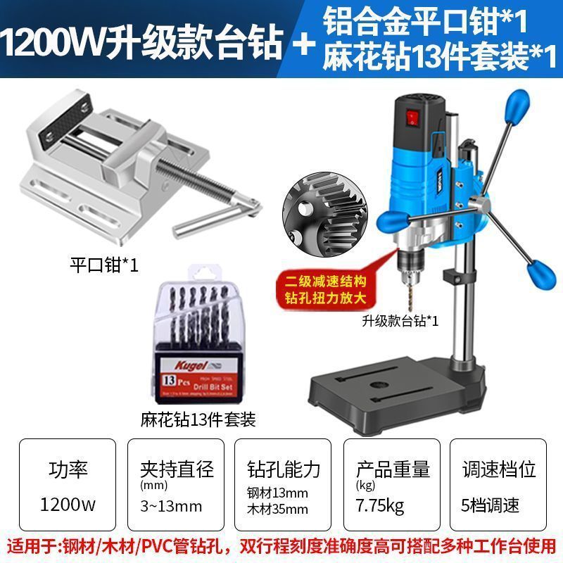 • 2단 감속 1200W 벤치 드릴 + 트위스트 드릴 13개 + 플랫 노즈 플라이어