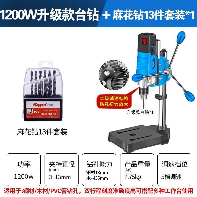 • 2단 감속 1200W 벤치 드릴 + 13 트위스트 드릴