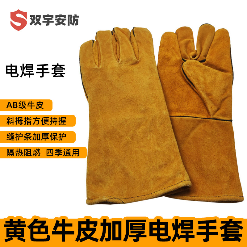 13inch 더블 레이어 빨간색 소 가죽 확장 용접 장갑 33cm 흰색 안감 두 번째 레이어 긴 소 가죽 빨간색 용접 장갑스토어 가기