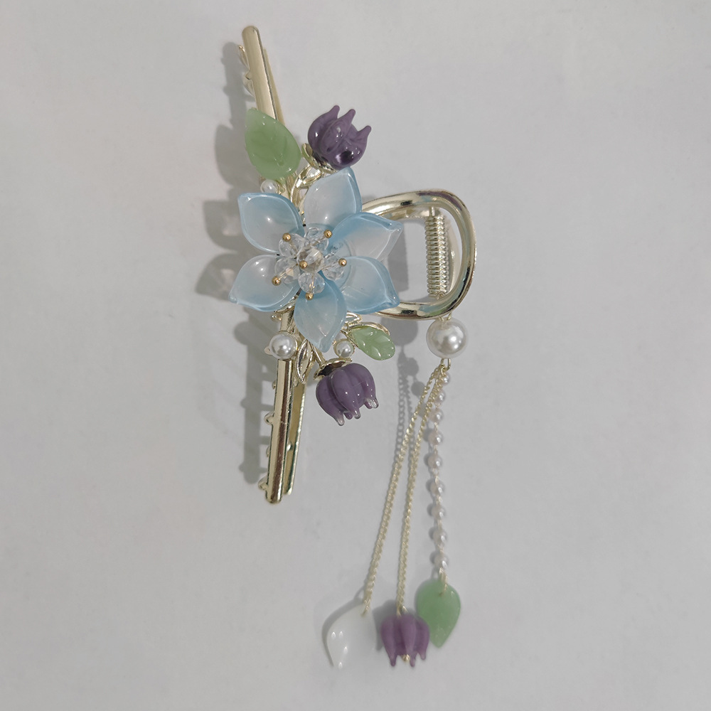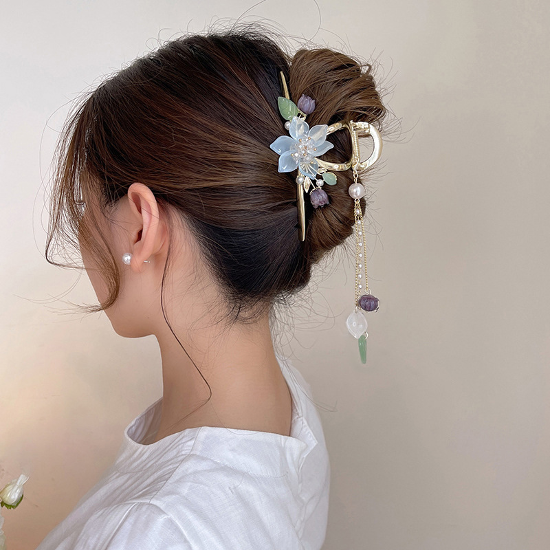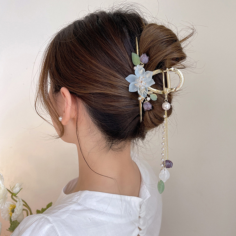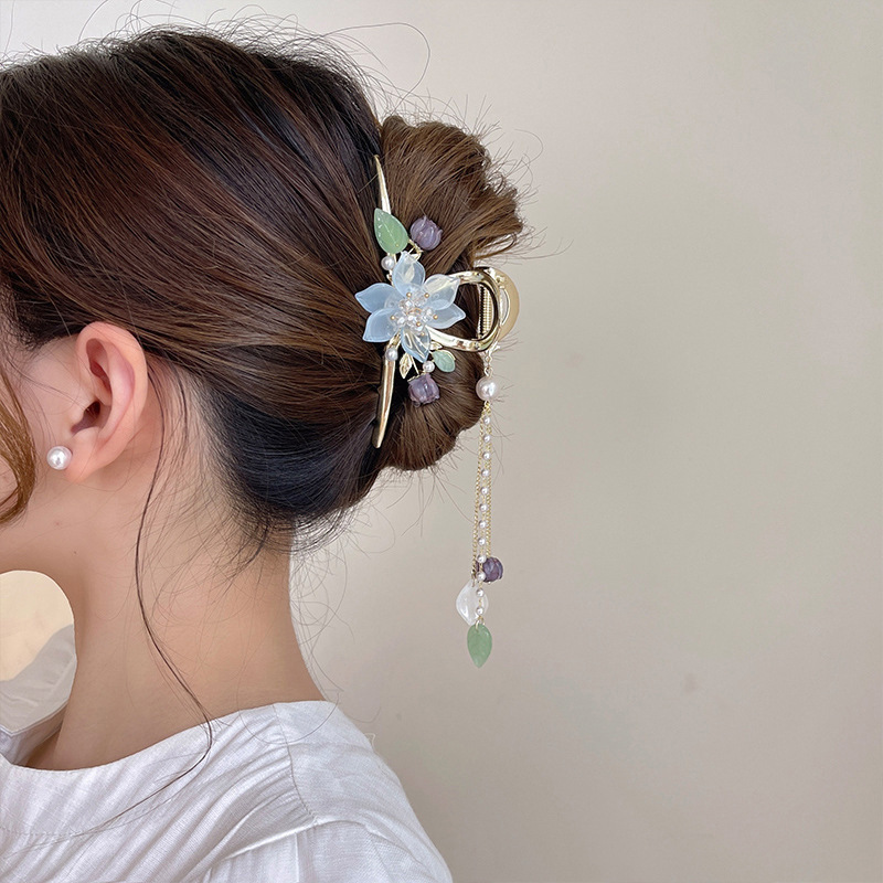 클래식 Orchid Tassel 그랩 클립 머리 뒷면 고급 헤어 클립 헤드웨어 헤어 넥타이 쥬얼리 2022 새로운 상어 클립