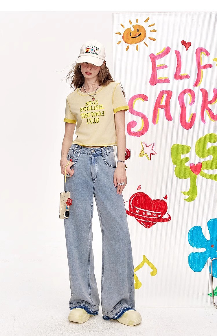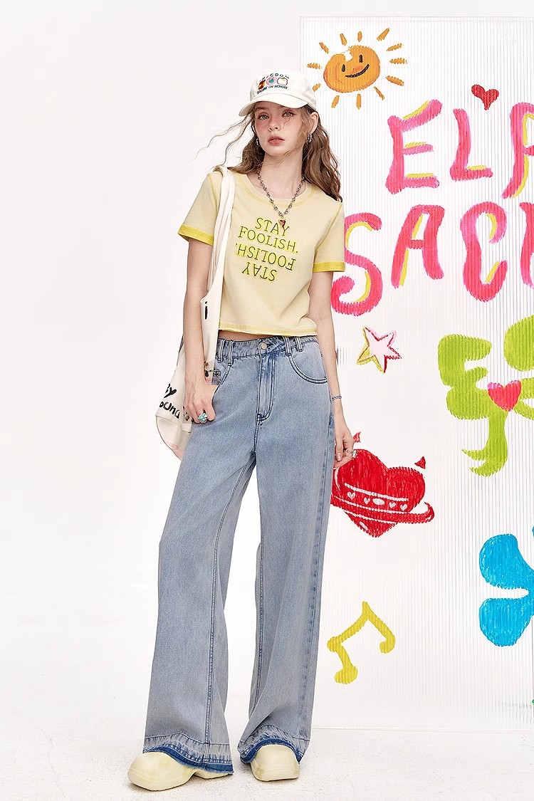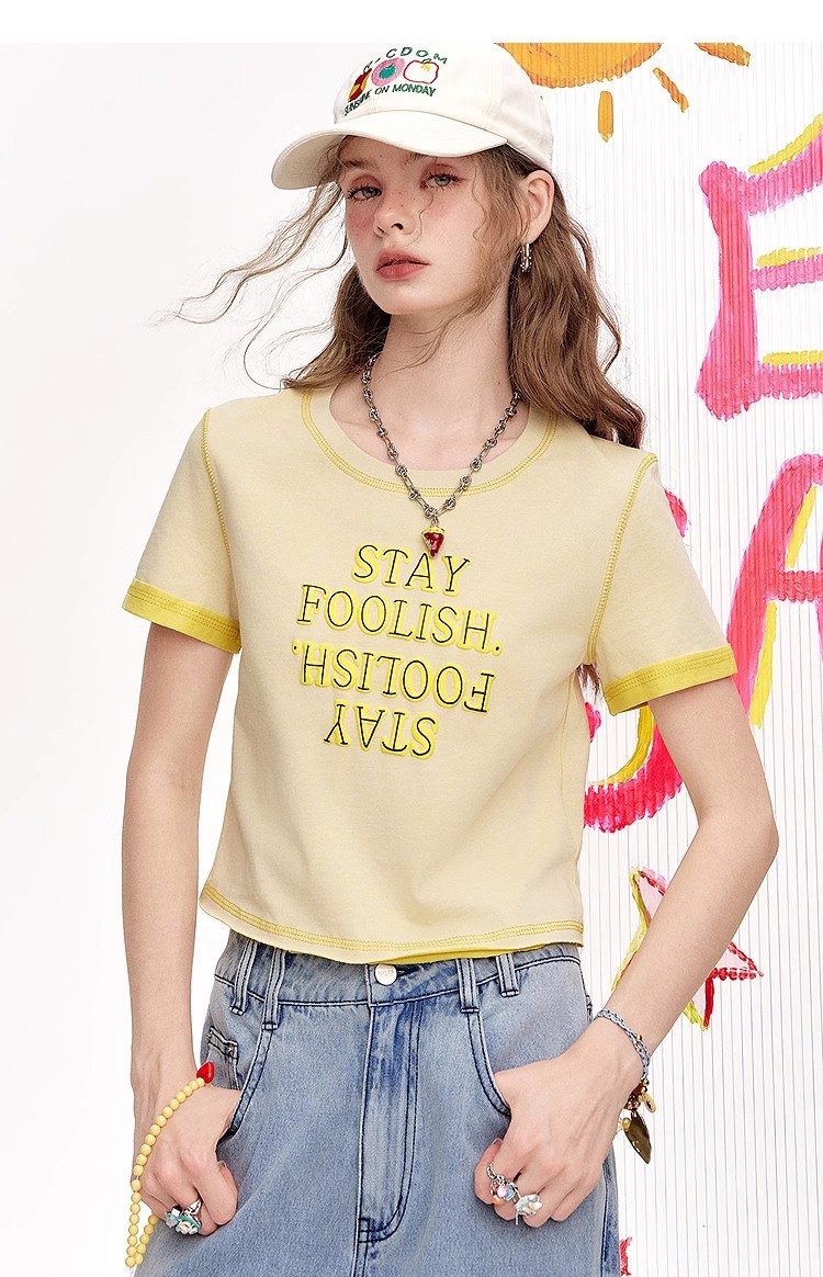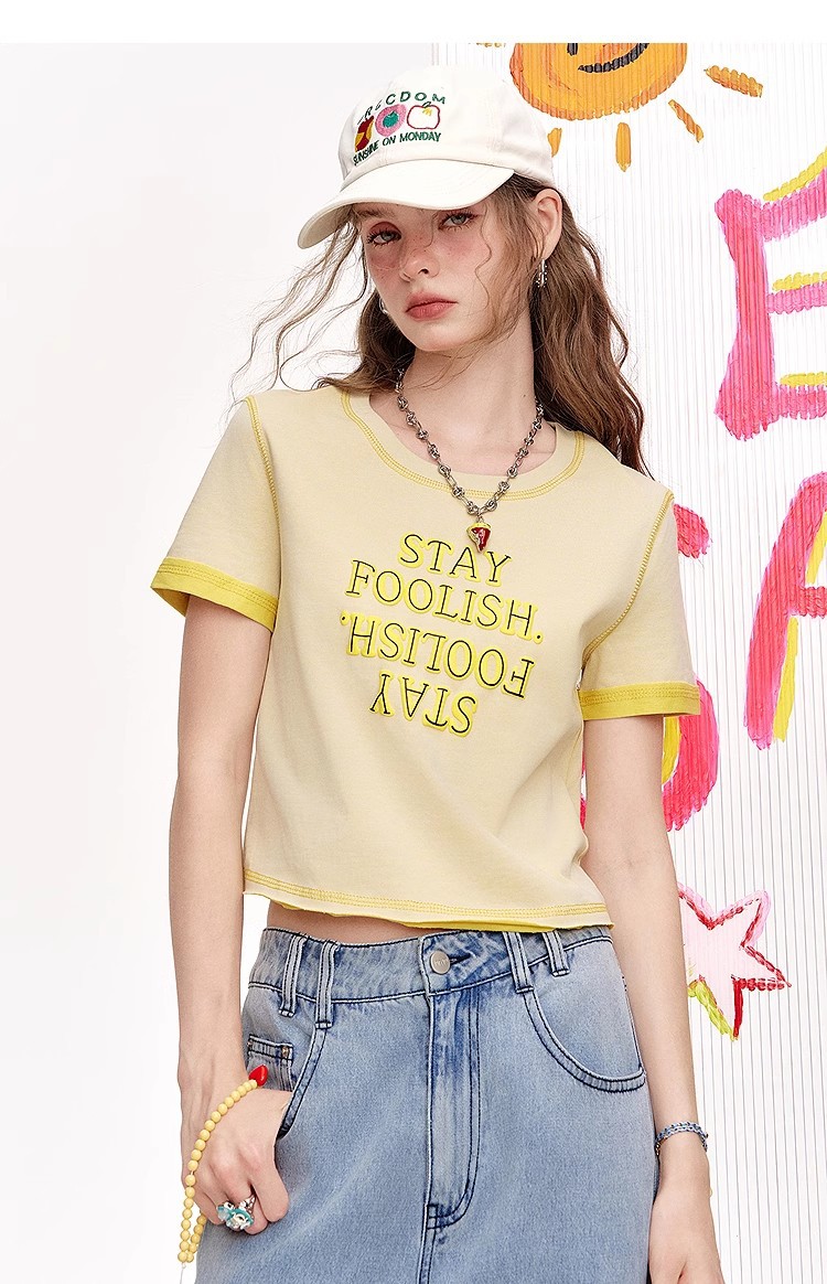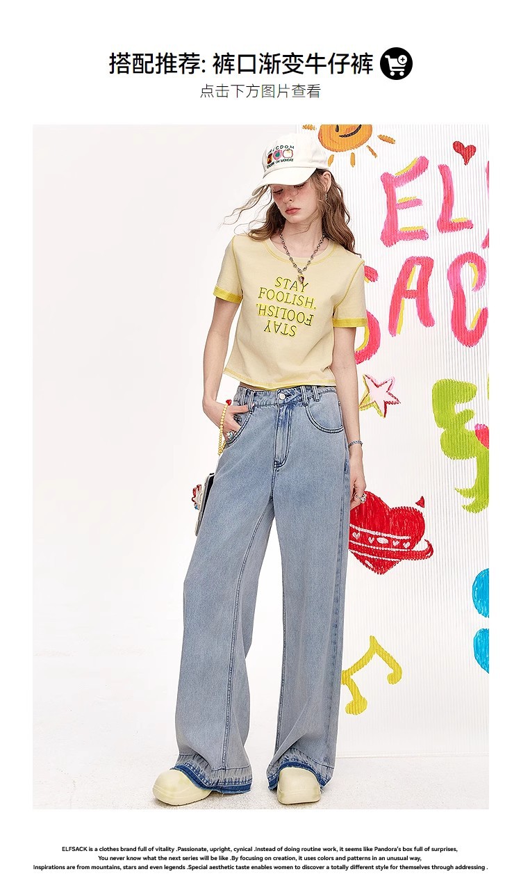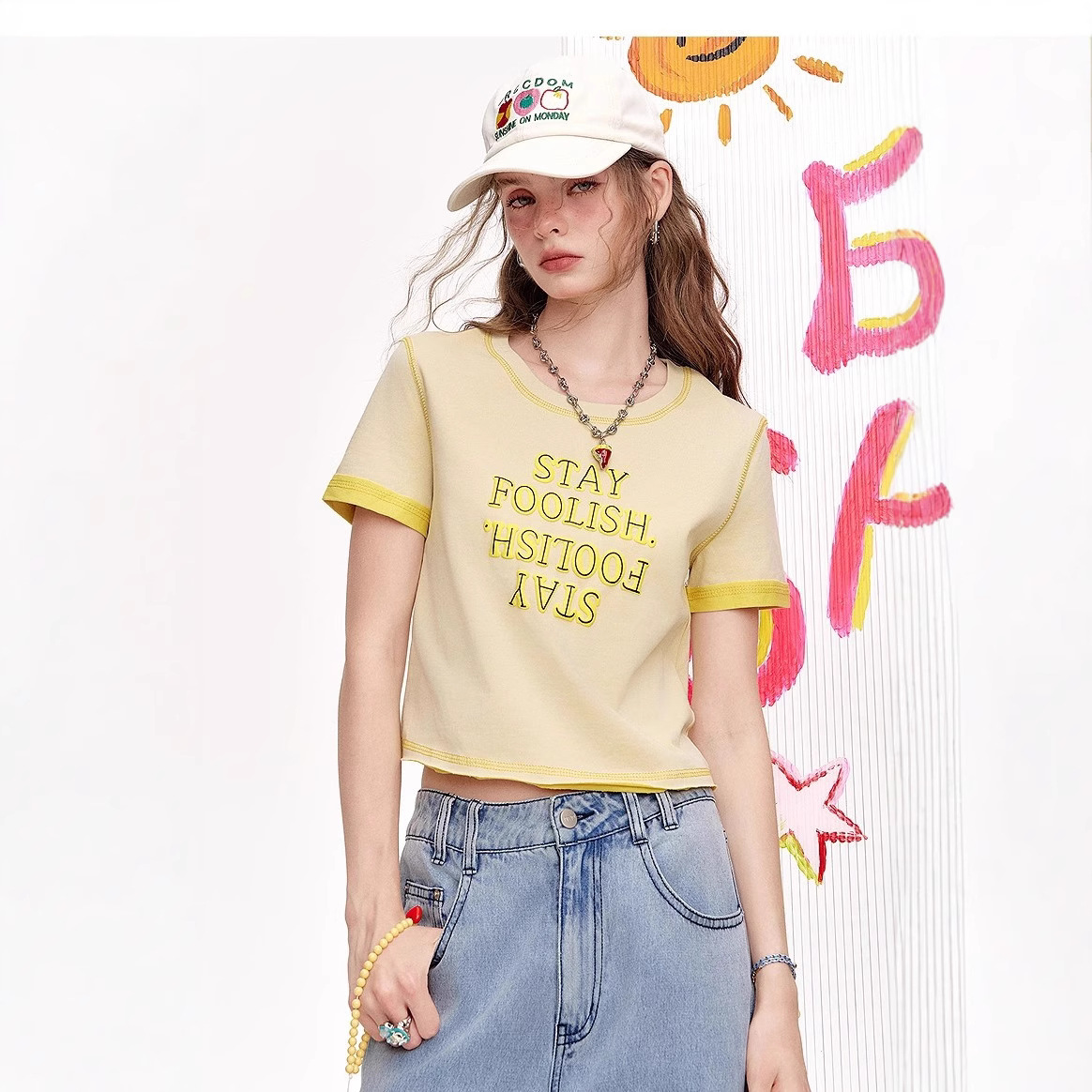 반팔 티셔츠를 인쇄하는 고블린 포켓 레터 여성의 2025 년 봄과 여름 새로운 캐주얼 루즈 슬리밍 쇼트 탑