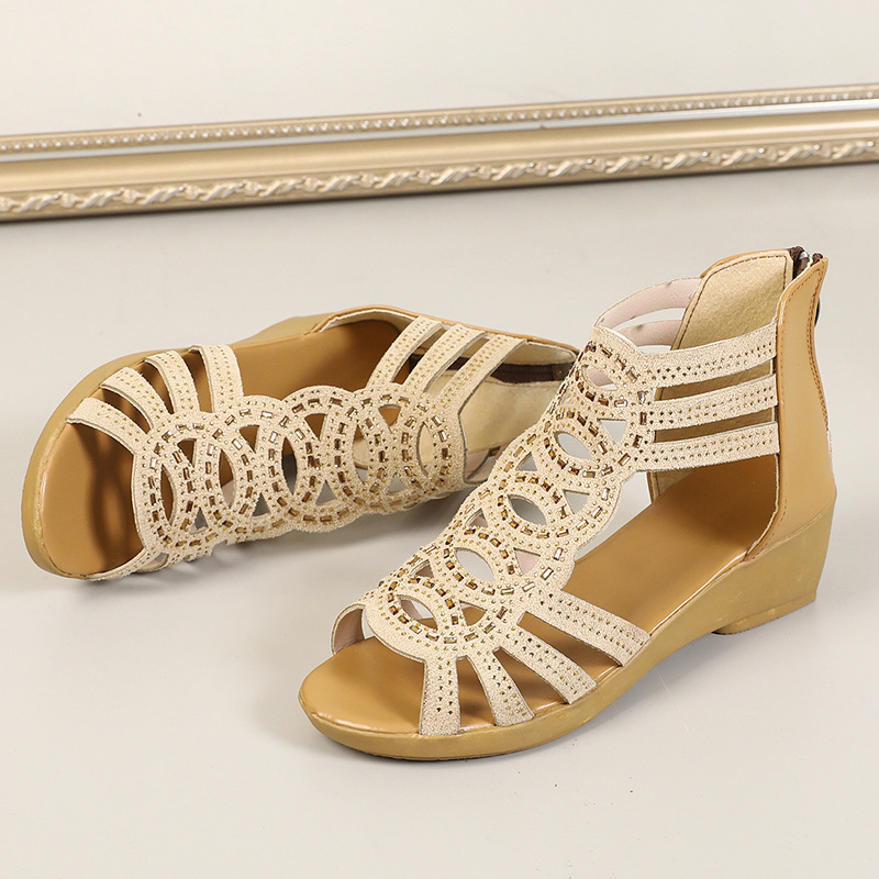 대외 무역 인기 로마 샌들 여성 여름 2024 새로운 부드러운 밑창 어머니 신발 패션 겉옷 여성 샌들 웨지 힐 여성스토어 가기