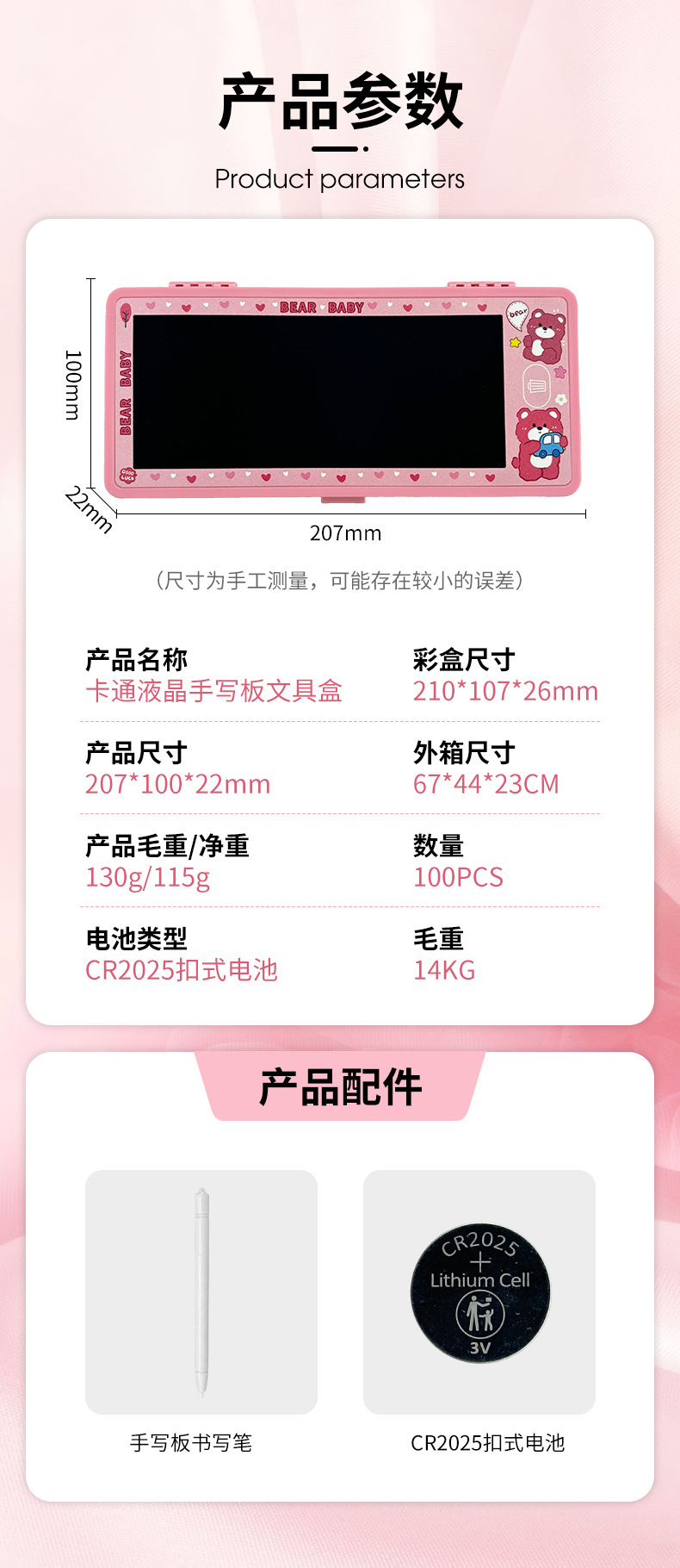 • 딸기 곰 만화 핑크 편지지 상자 + LCD 드로잉 보드