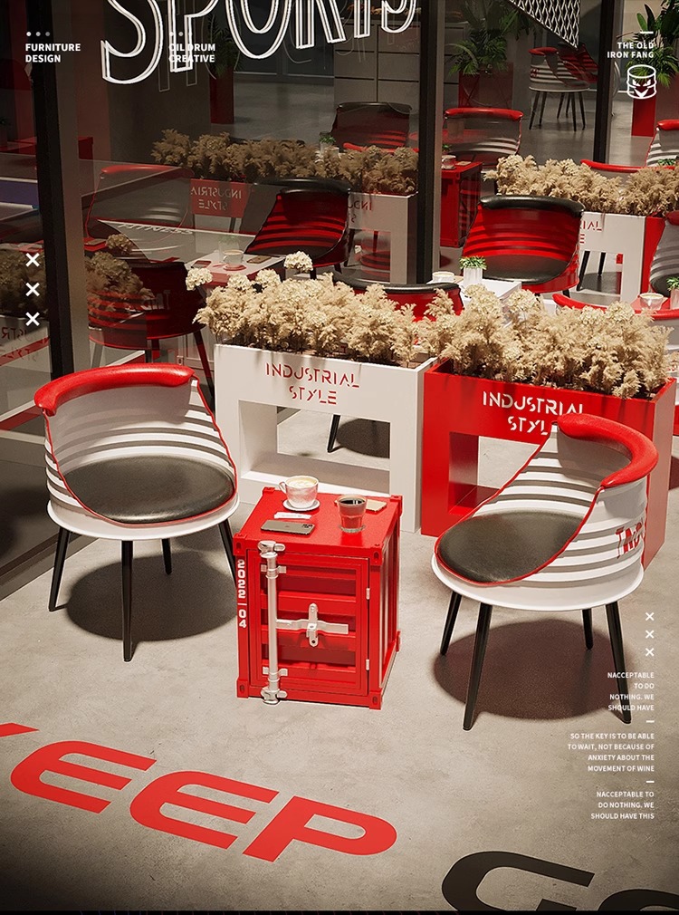 밀크 티 샵 테이블과 의자 카드 홀더 그물 레드 아이언 아트 디저트 샵 리셉션 산업용 윈드 테이블과 의자 조합 외부의 상업용 커피 숍스토어 가기