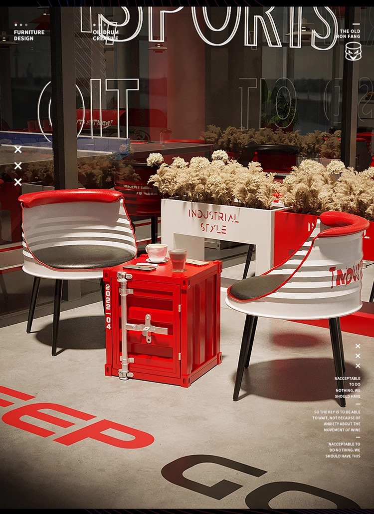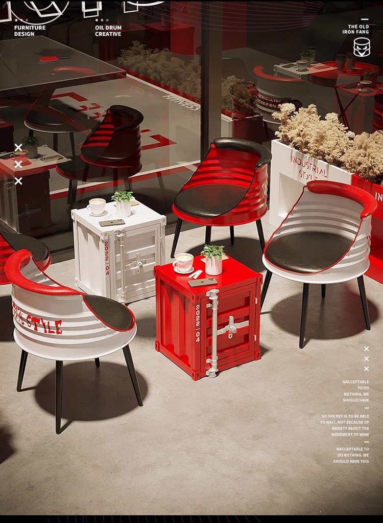 밀크 티 샵 테이블과 의자 카드 홀더 그물 레드 아이언 아트 디저트 샵 리셉션 산업용 윈드 테이블과 의자 조합 외부의 상업용 커피 숍