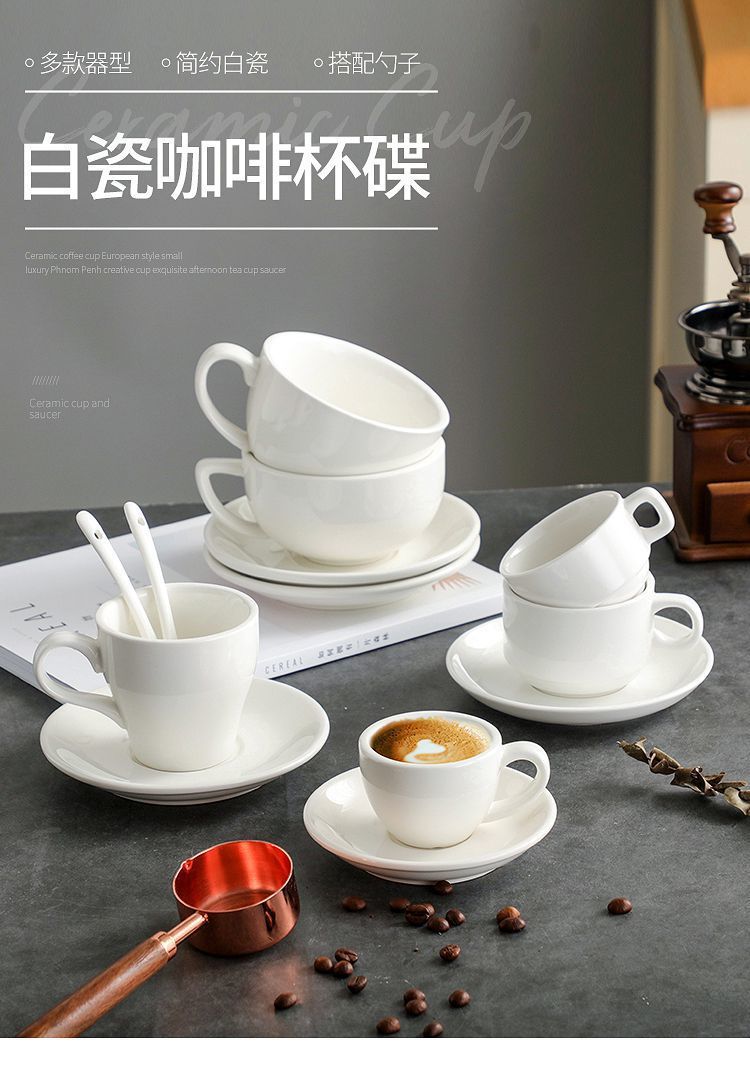 순수한 흰색 두꺼운 세라믹 커피 컵 세트 Sawada Latte 이탈리아 스타일 집중 간단한 큰 입 절묘한 유럽 스타일 컵스토어 가기