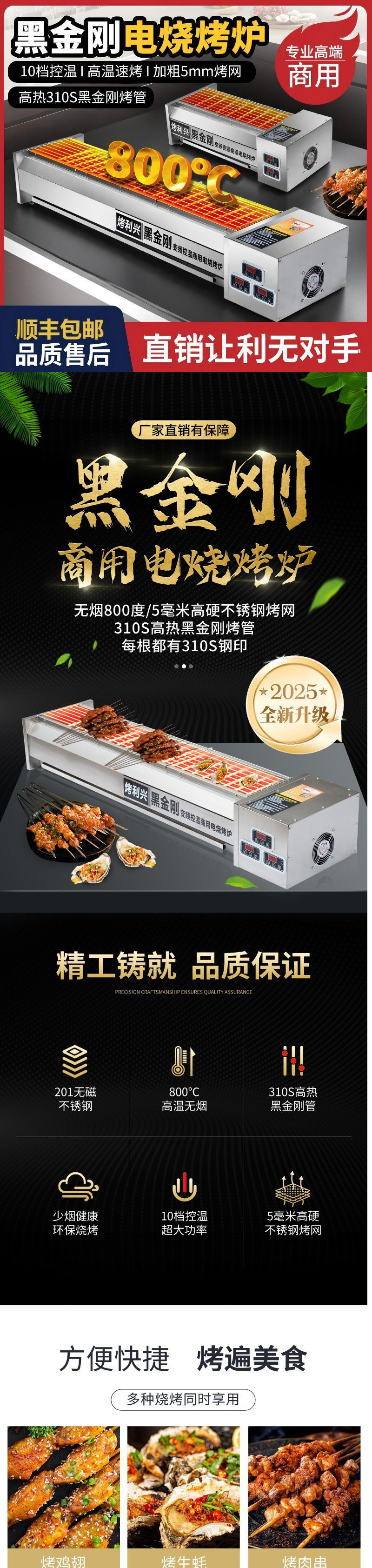 상업용 전기 블랙 다이아몬드 바베큐 그릴 무연 전기 그릴 가정용 양고기 꼬치 구이 굴 다기능 바베큐 그릴스토어 가기