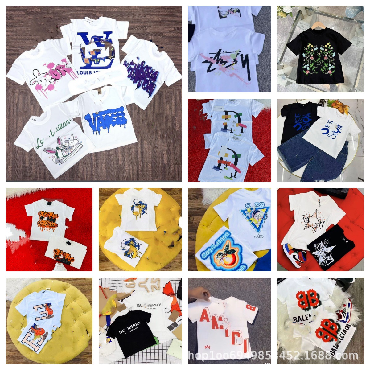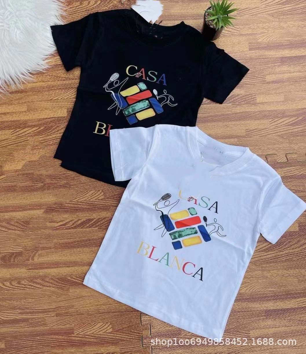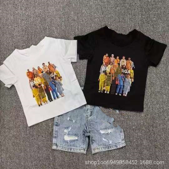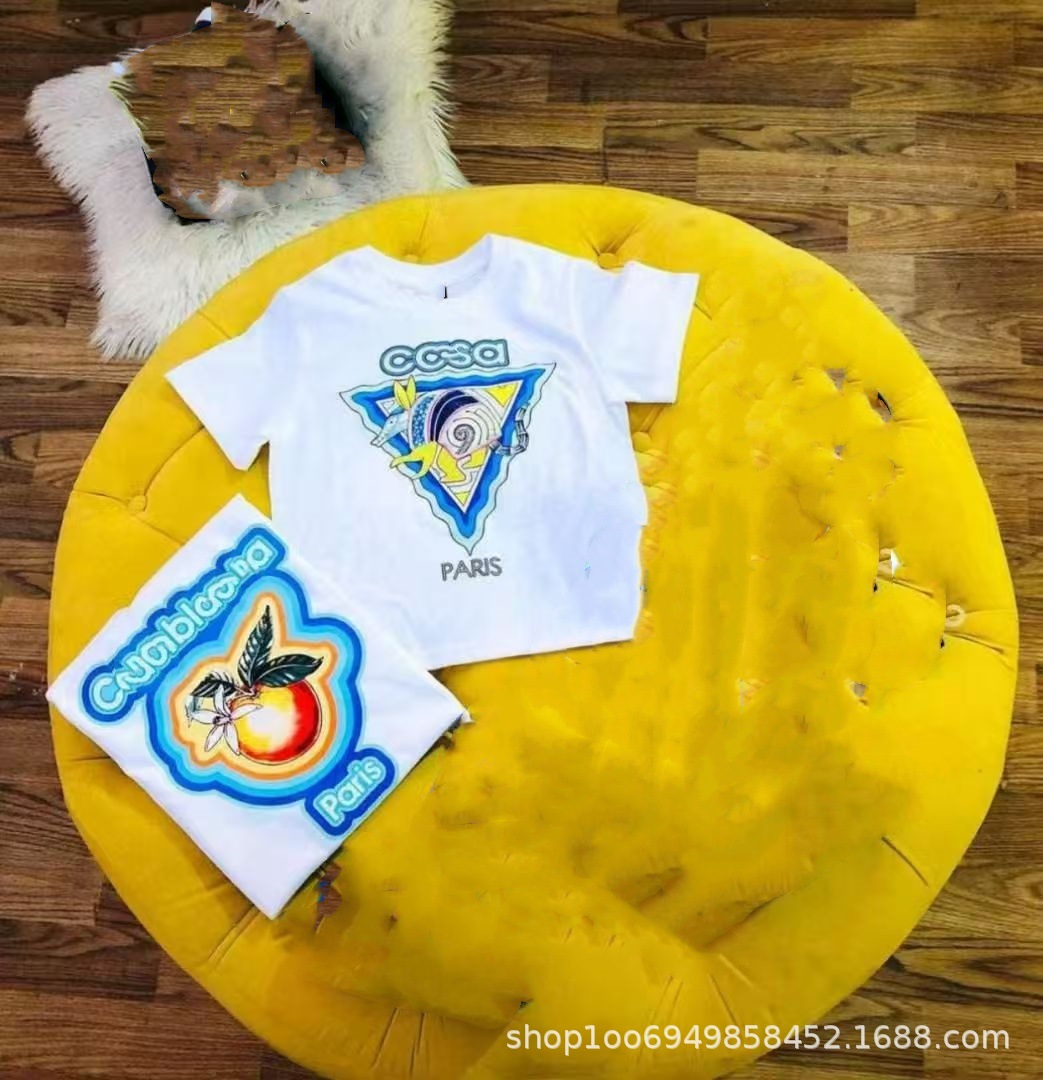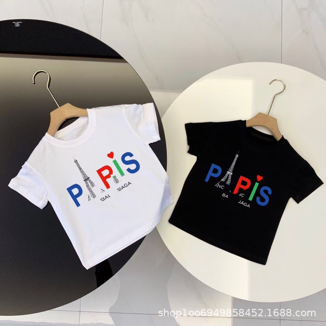 240g 더블 원사 두꺼운 어린이 어깨 짧은 소매 신장이 클래스 A 어린이 티셔츠 파리 구지아 패션 브랜드 인쇄