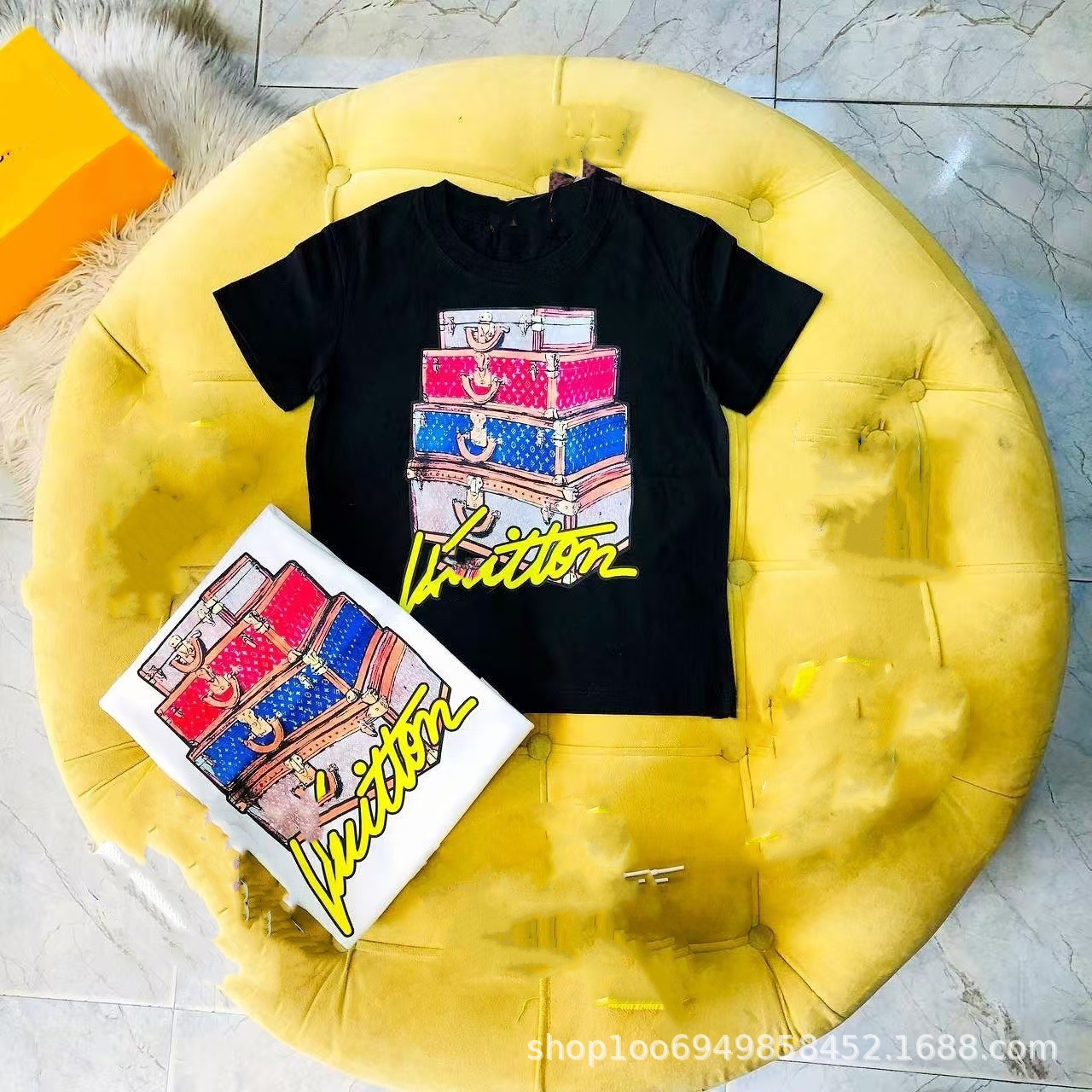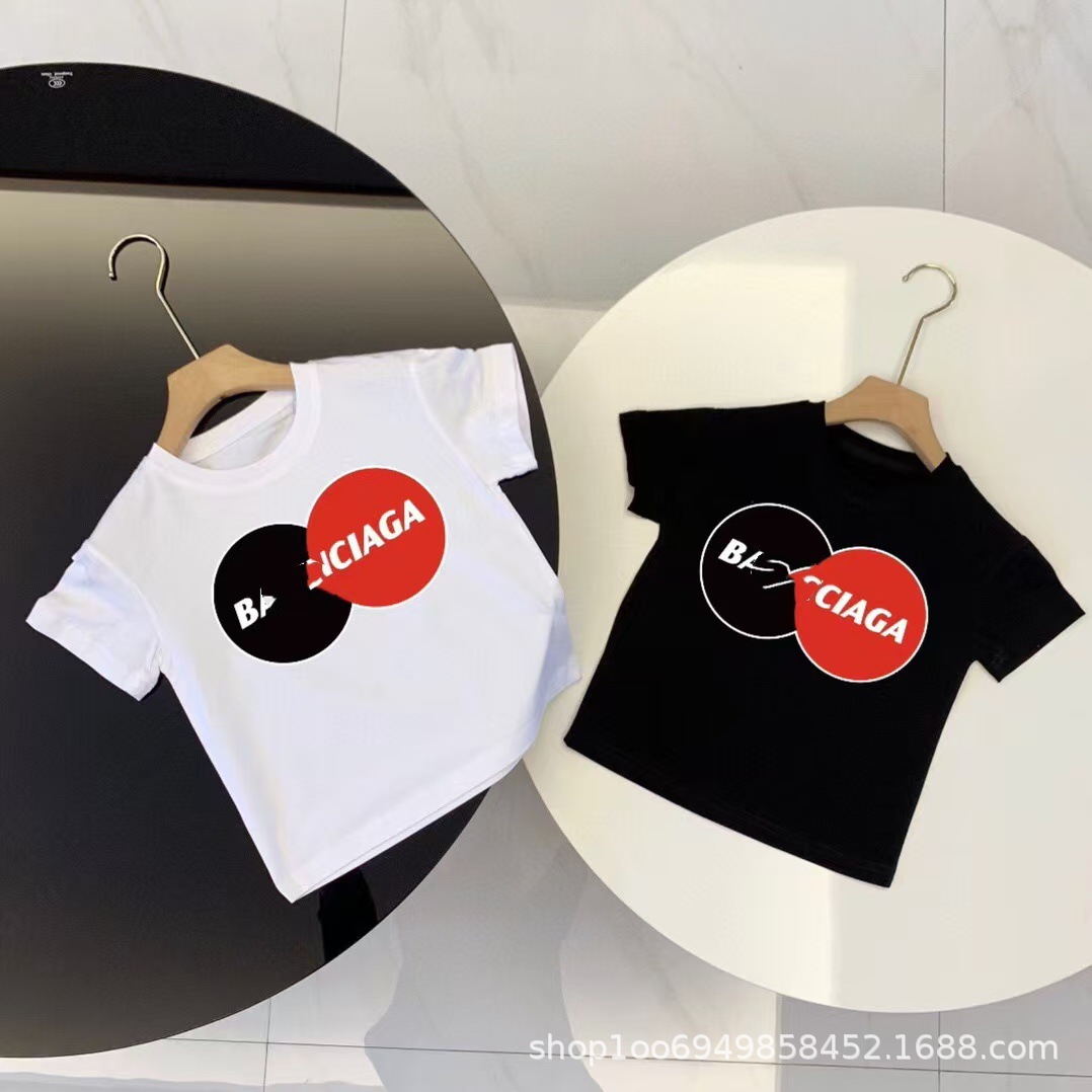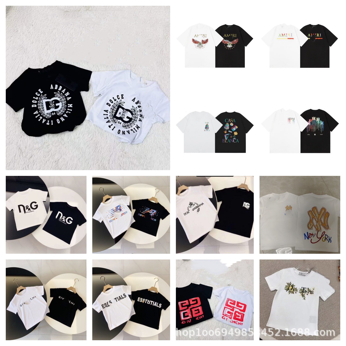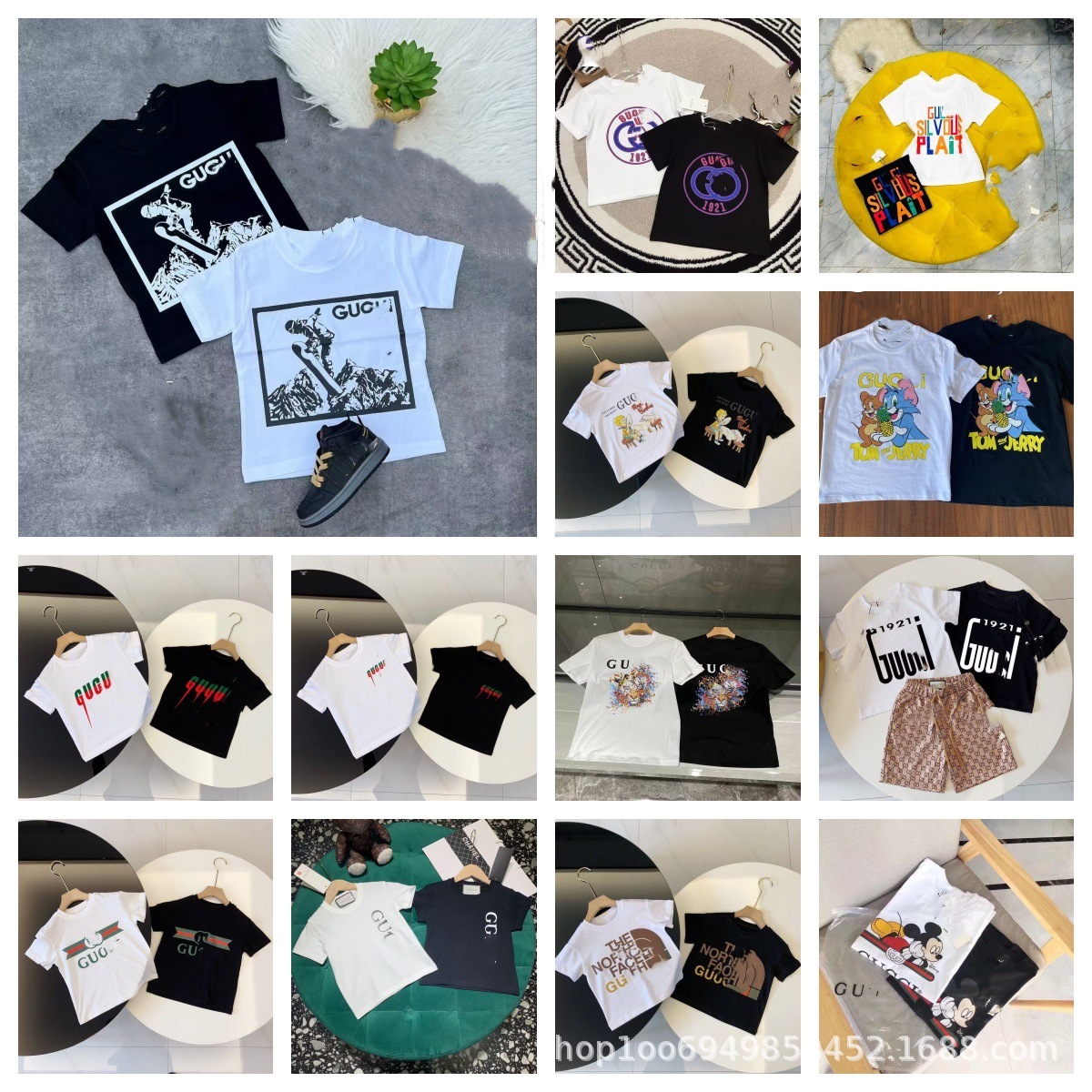 240g 더블 원사 두꺼운 어린이 어깨 짧은 소매 신장이 클래스 A 어린이 티셔츠 파리 구지아 패션 브랜드 인쇄