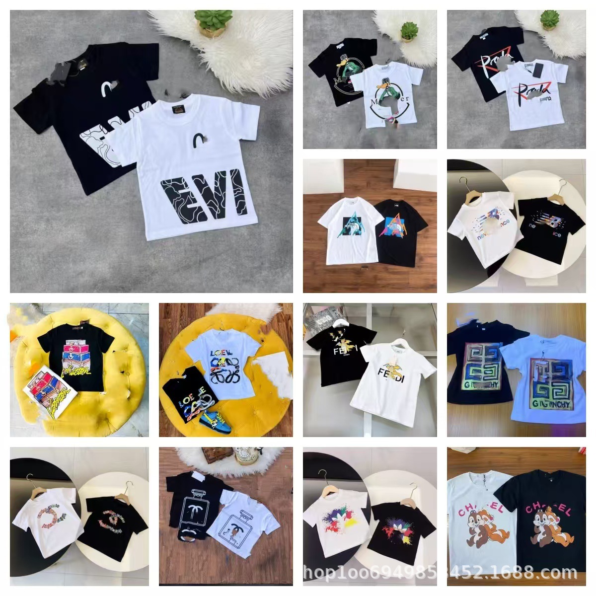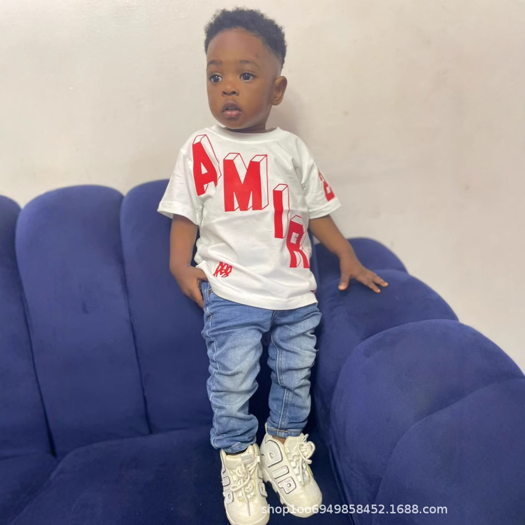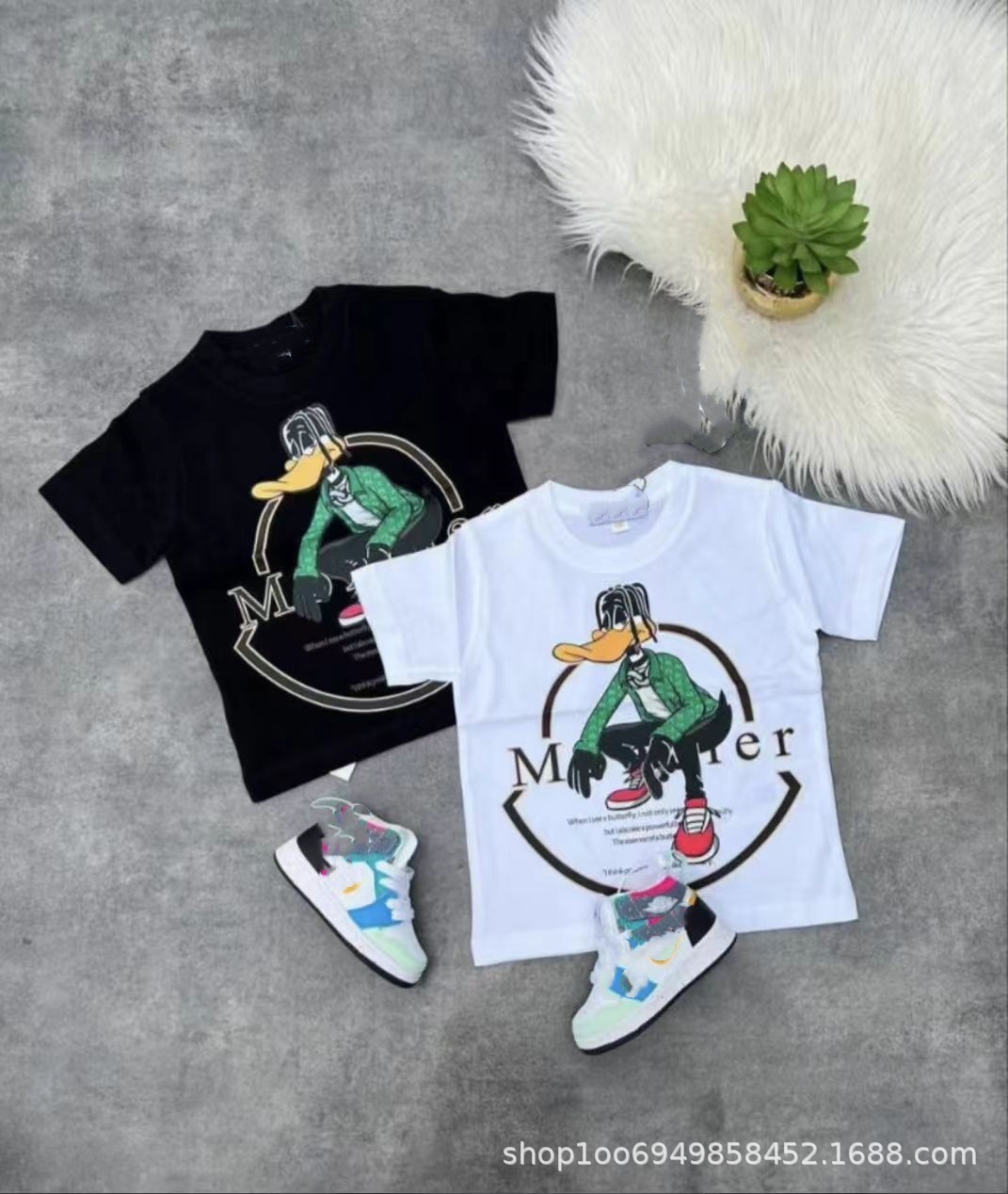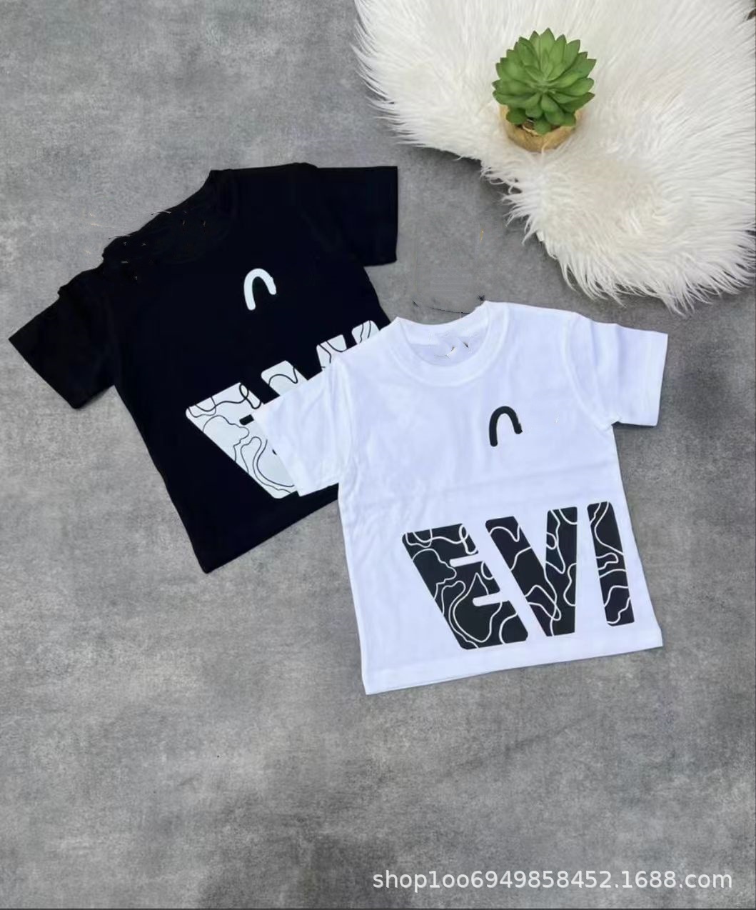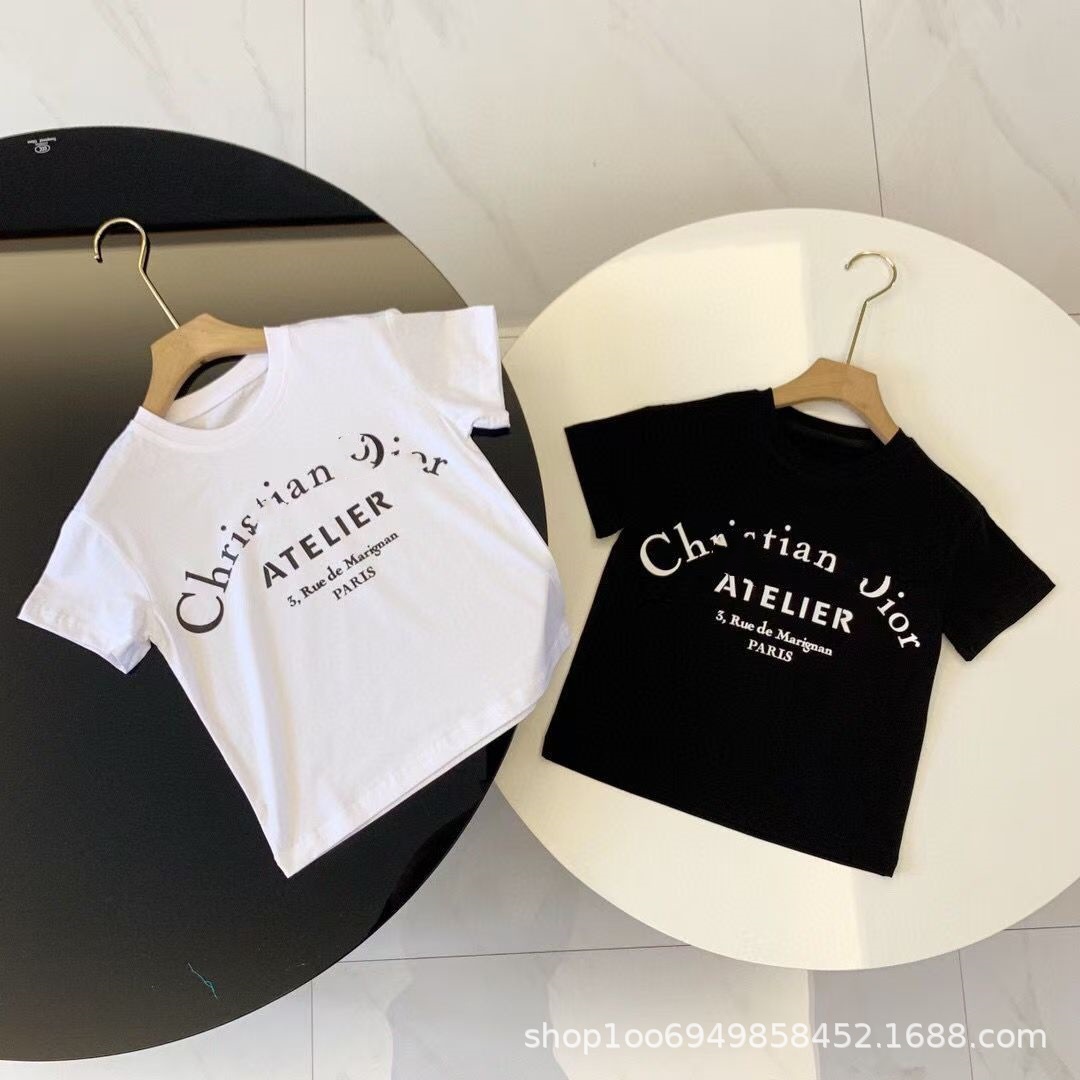 240g 더블 원사 두꺼운 어린이 어깨 짧은 소매 신장이 클래스 A 어린이 티셔츠 파리 구지아 패션 브랜드 인쇄