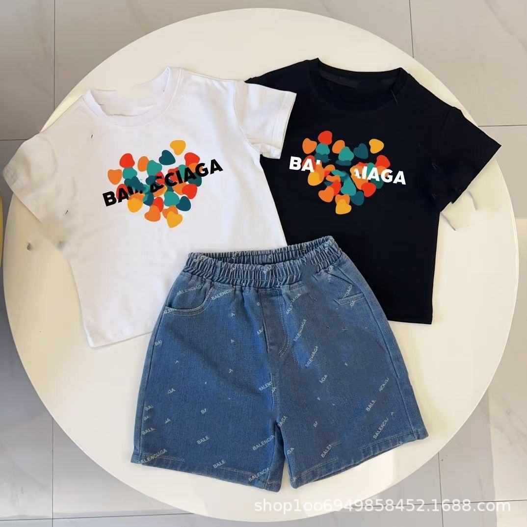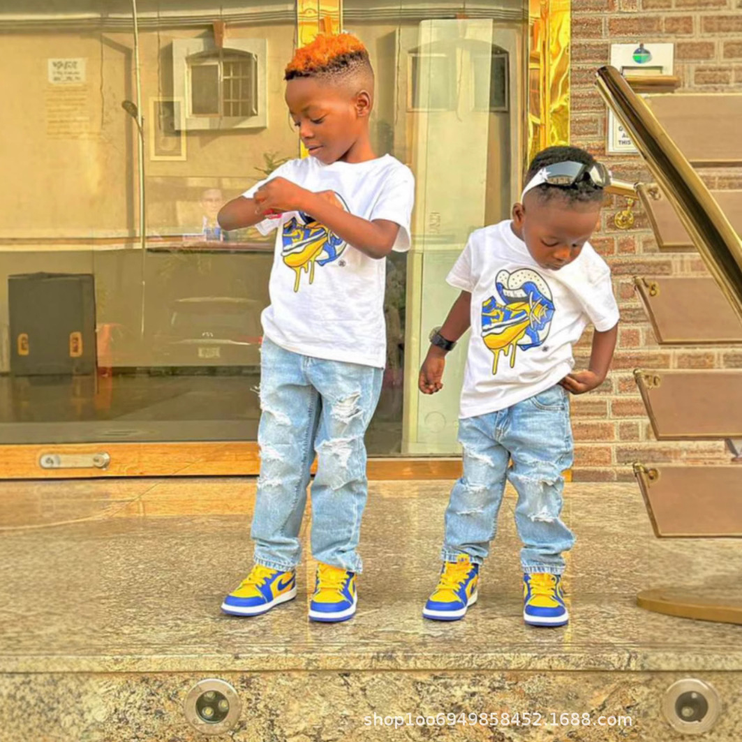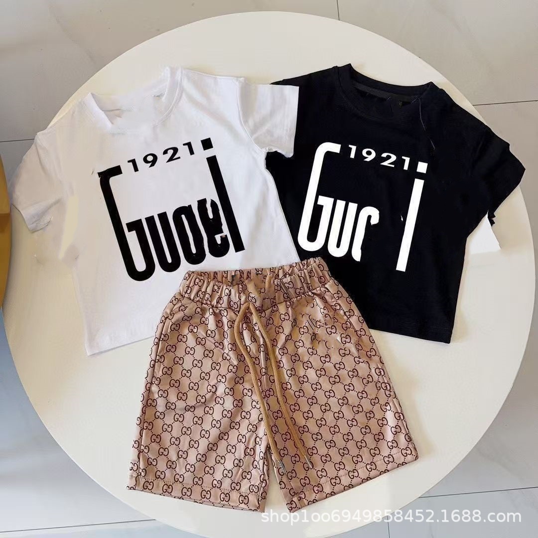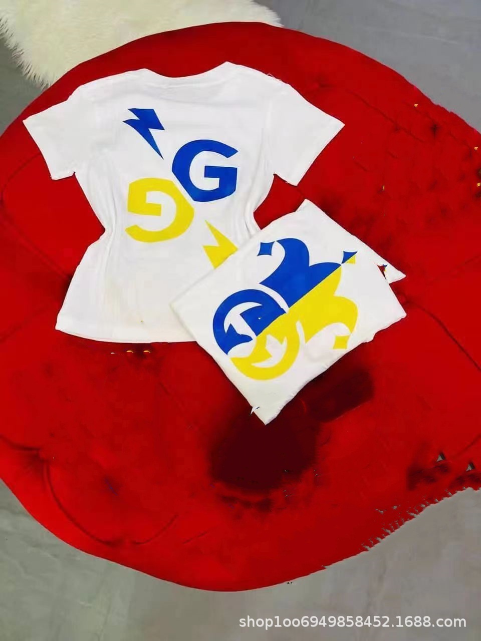 240g 더블 원사 두꺼운 어린이 어깨 짧은 소매 신장이 클래스 A 어린이 티셔츠 파리 구지아 패션 브랜드 인쇄