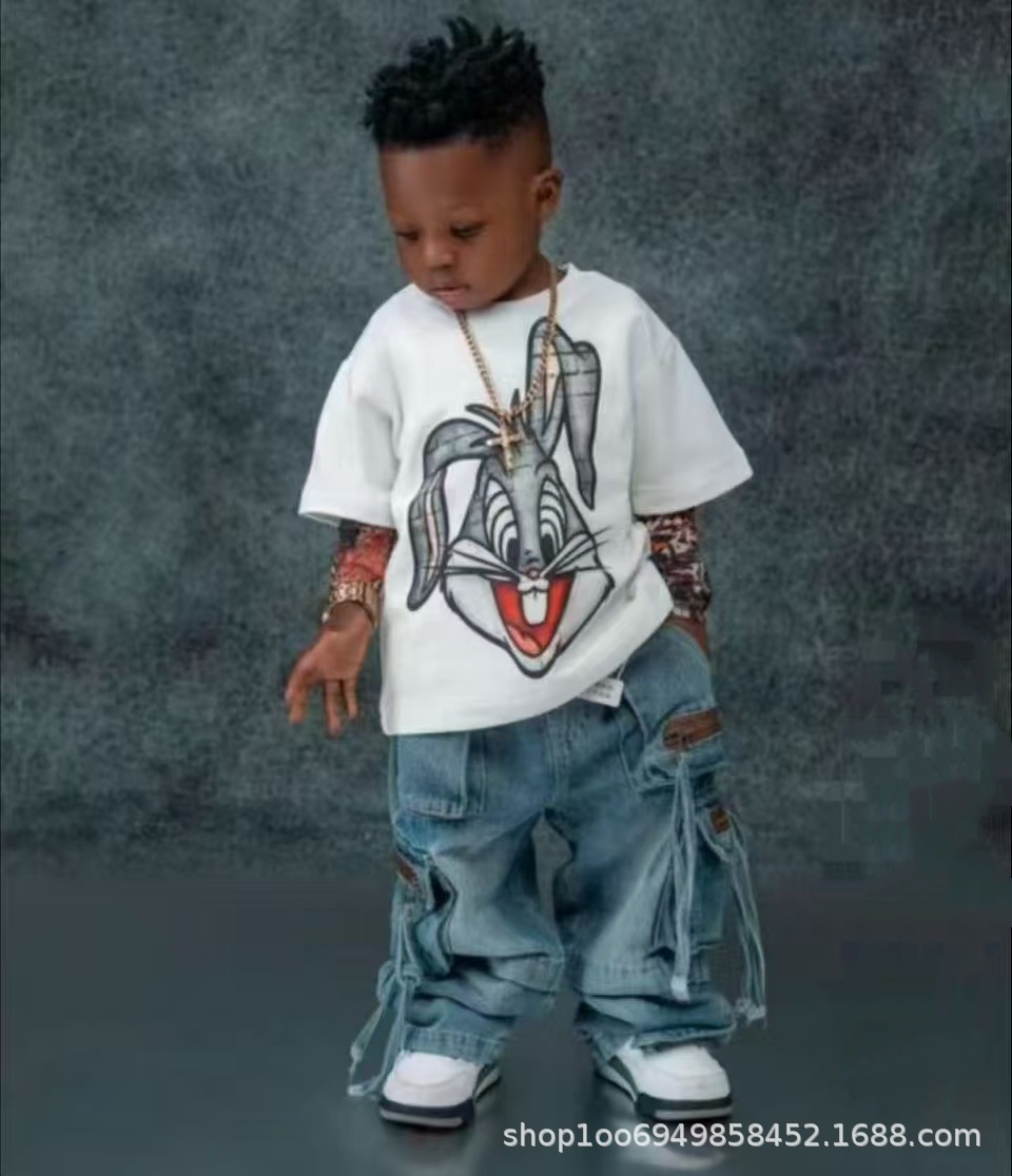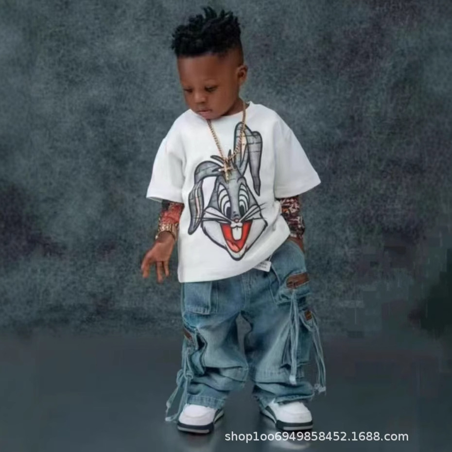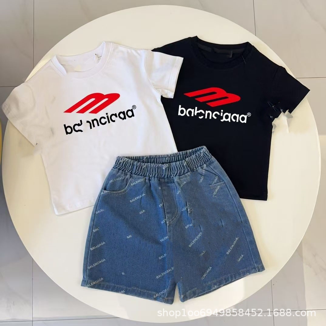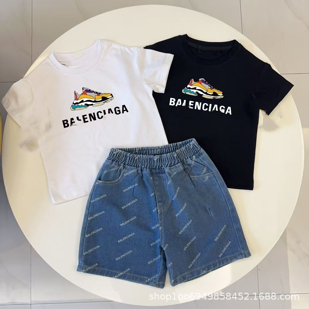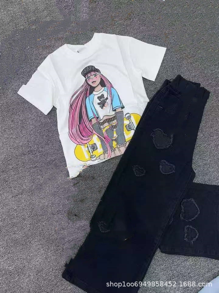 240g 더블 원사 두꺼운 어린이 어깨 짧은 소매 신장이 클래스 A 어린이 티셔츠 파리 구지아 패션 브랜드 인쇄