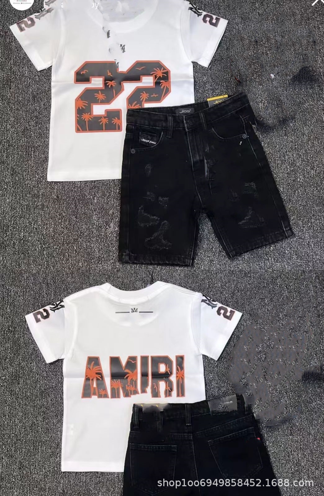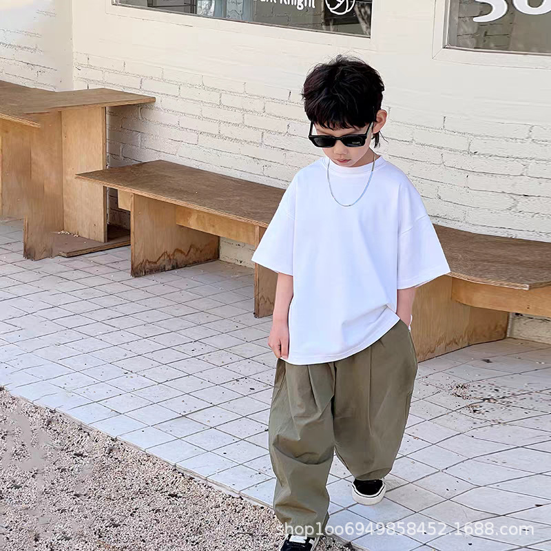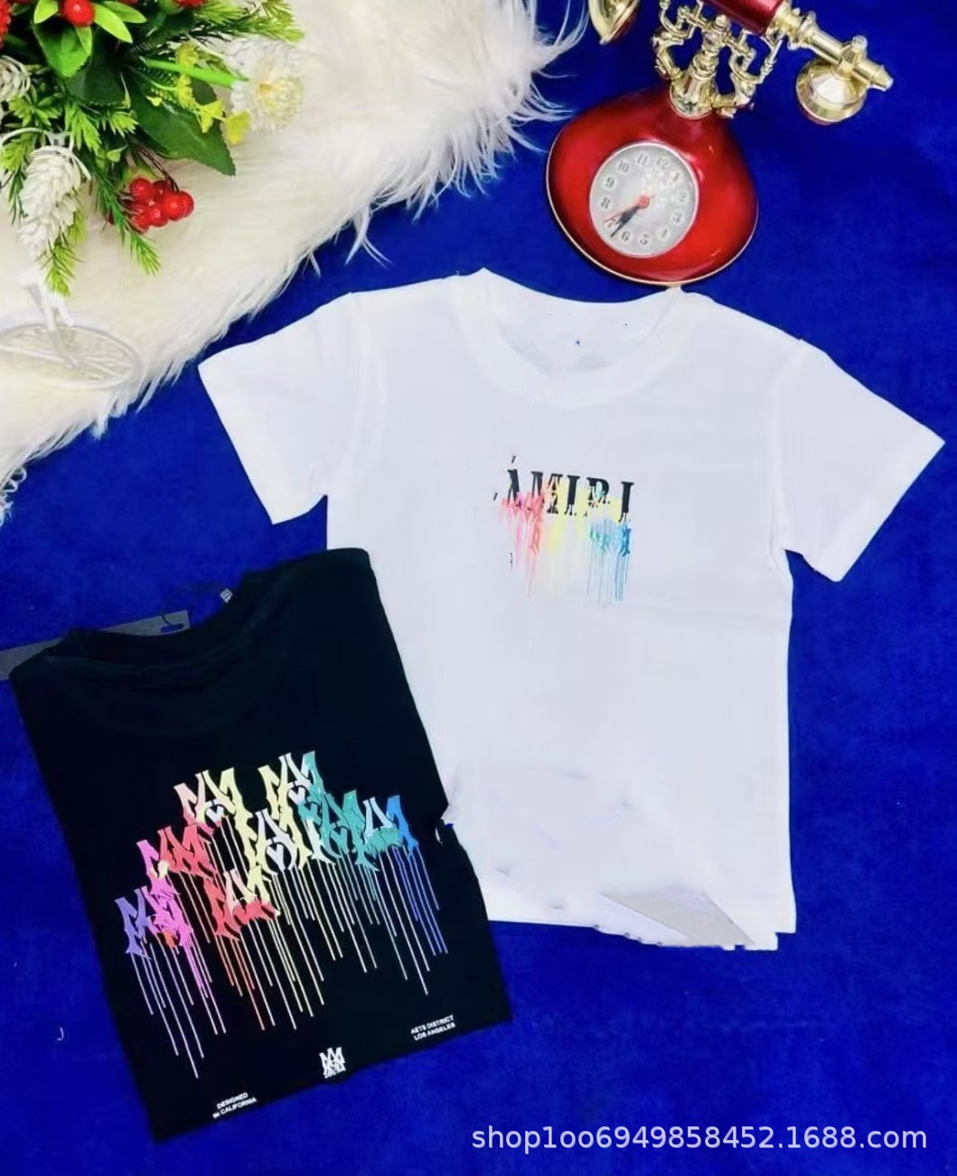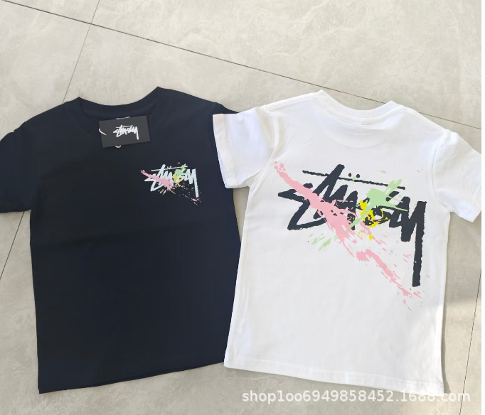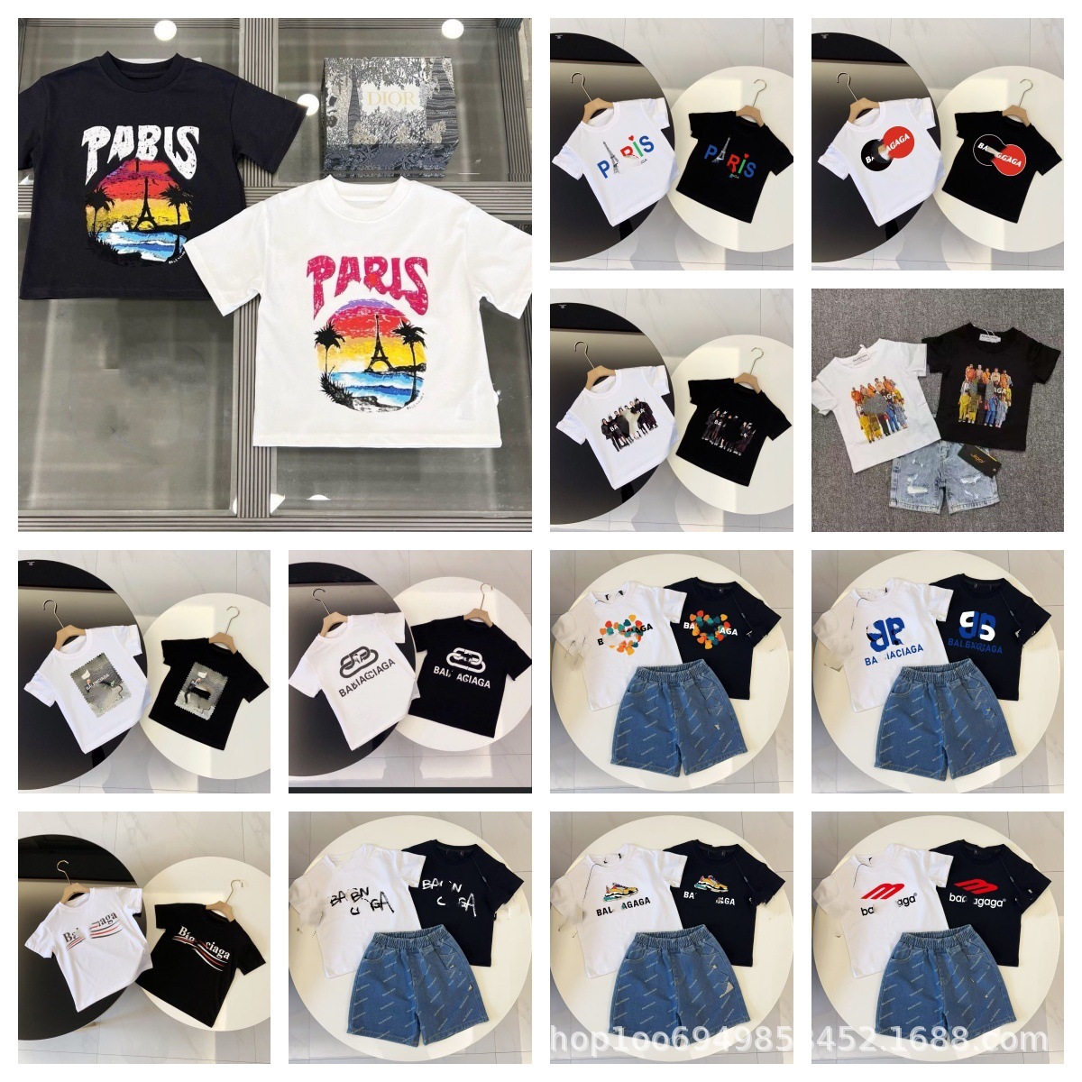 240g 더블 원사 두꺼운 어린이 어깨 짧은 소매 신장이 클래스 A 어린이 티셔츠 파리 구지아 패션 브랜드 인쇄스토어 가기