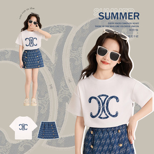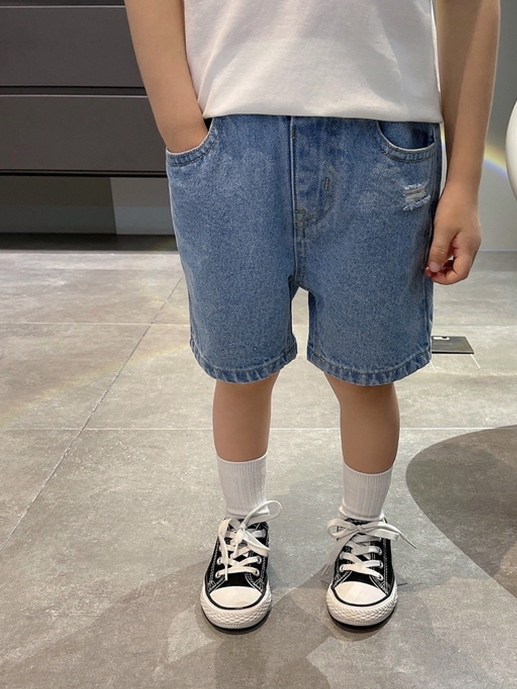 어린이 한국식 만화 데님 반바지 2025 여름 새 소년 올매치 캐주얼 바지 소녀 유행 유행 바지스토어 가기