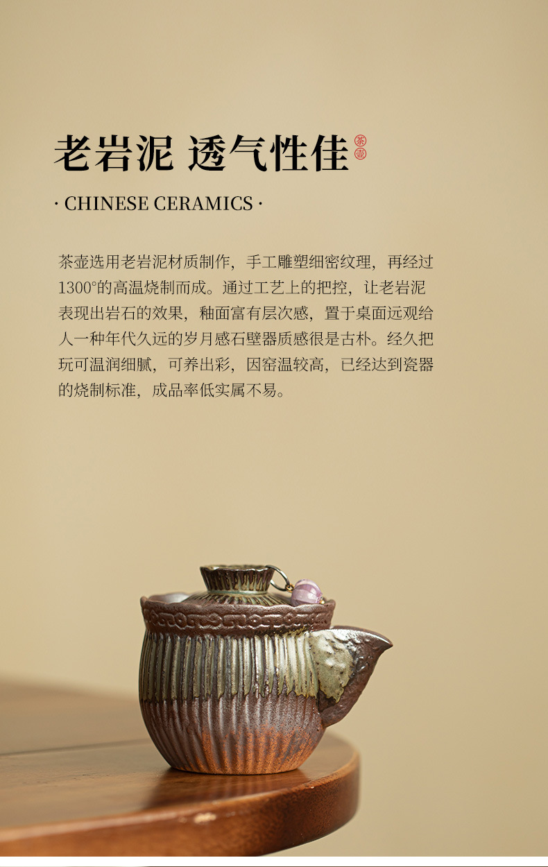 거친 도자기 고대 초기 바람 맑은 물 주전자 세라믹 차 세트 휴대용 냄비 보물 병 차 냄비 오래된 바위 진흙 단일 냄비 차 냄비스토어 가기