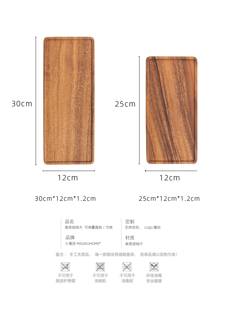 국경 간 남미 호두 나무 접시 커피 컵 트레이 직사각형 단단한 나무 트레이 건조 거품 테이블 일본 차 트레이