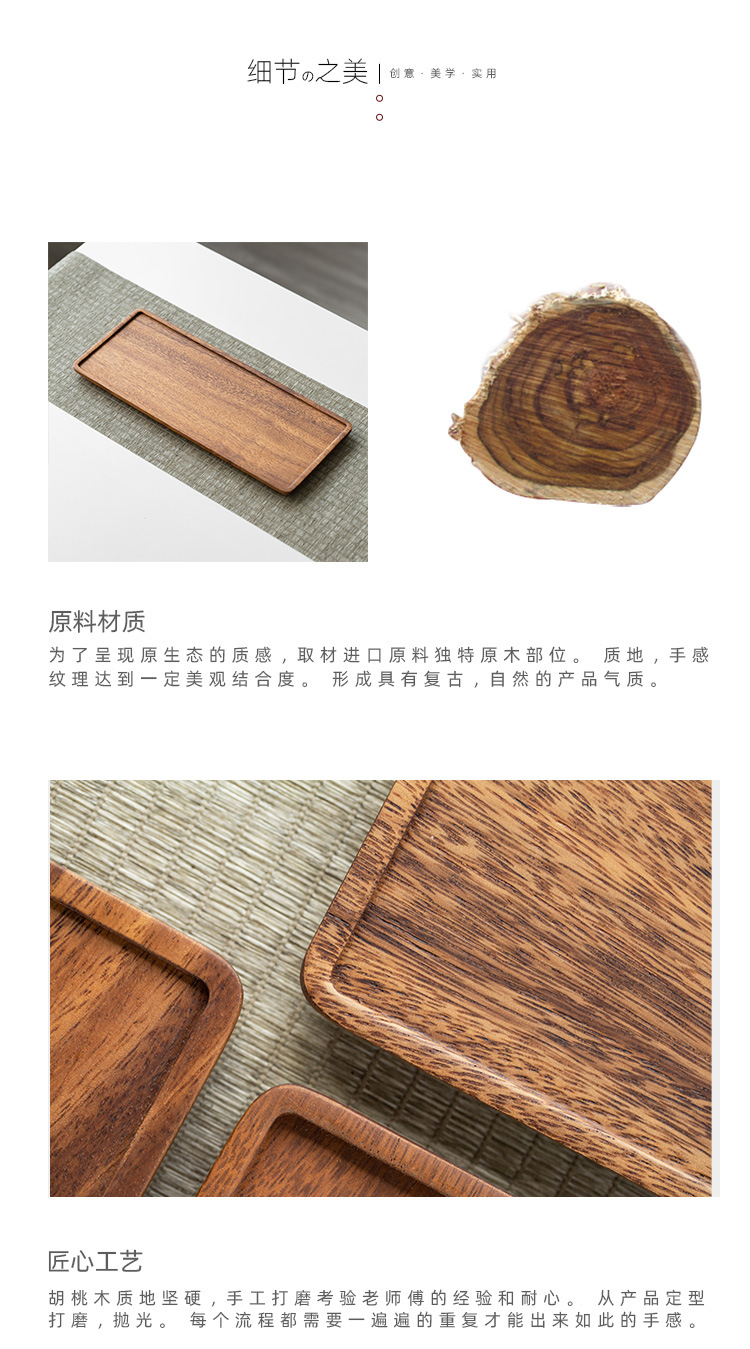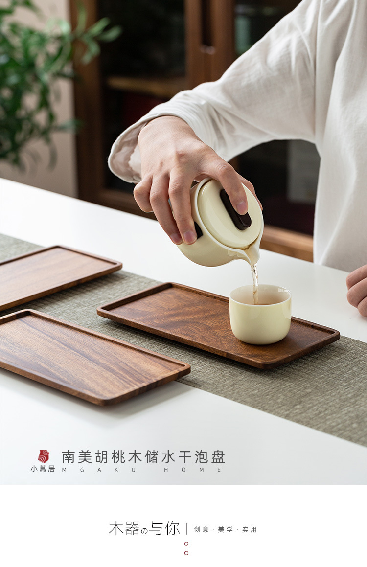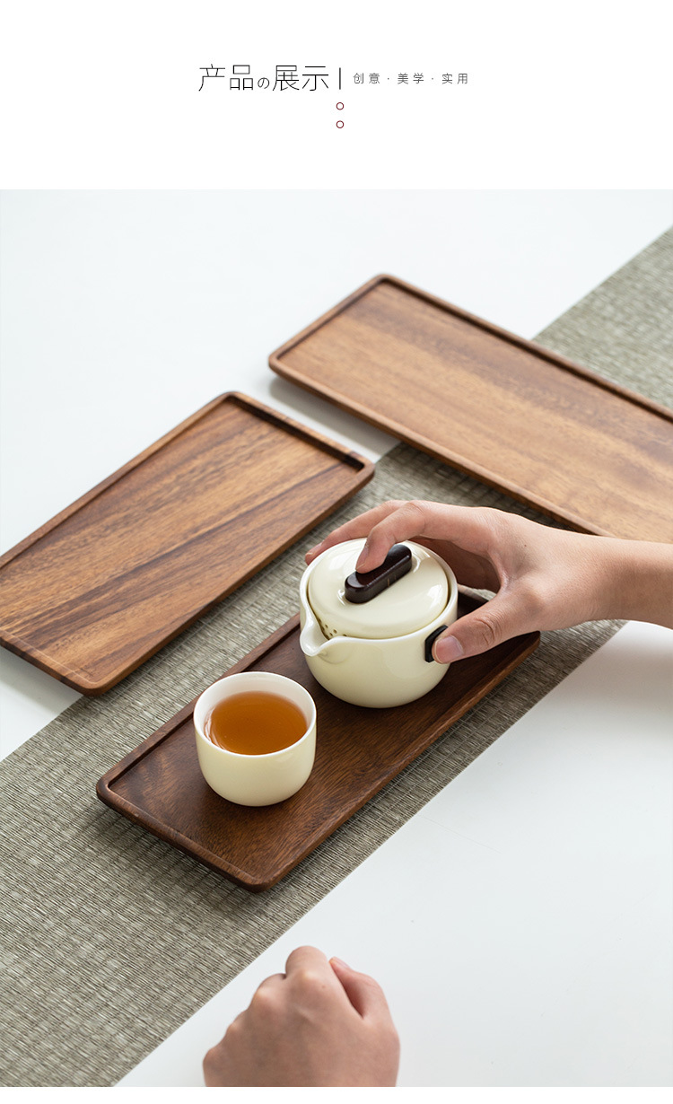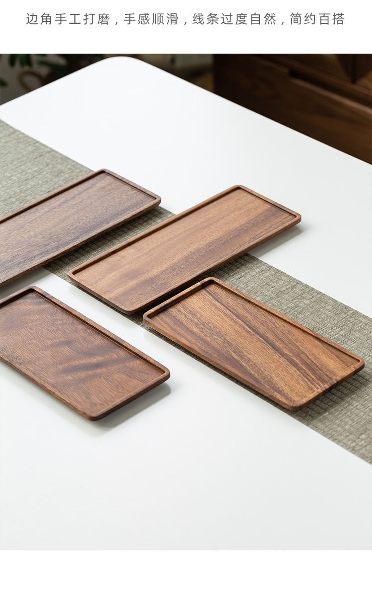 국경 간 남미 호두 나무 접시 커피 컵 트레이 직사각형 단단한 나무 트레이 건조 거품 테이블 일본 차 트레이스토어 가기
