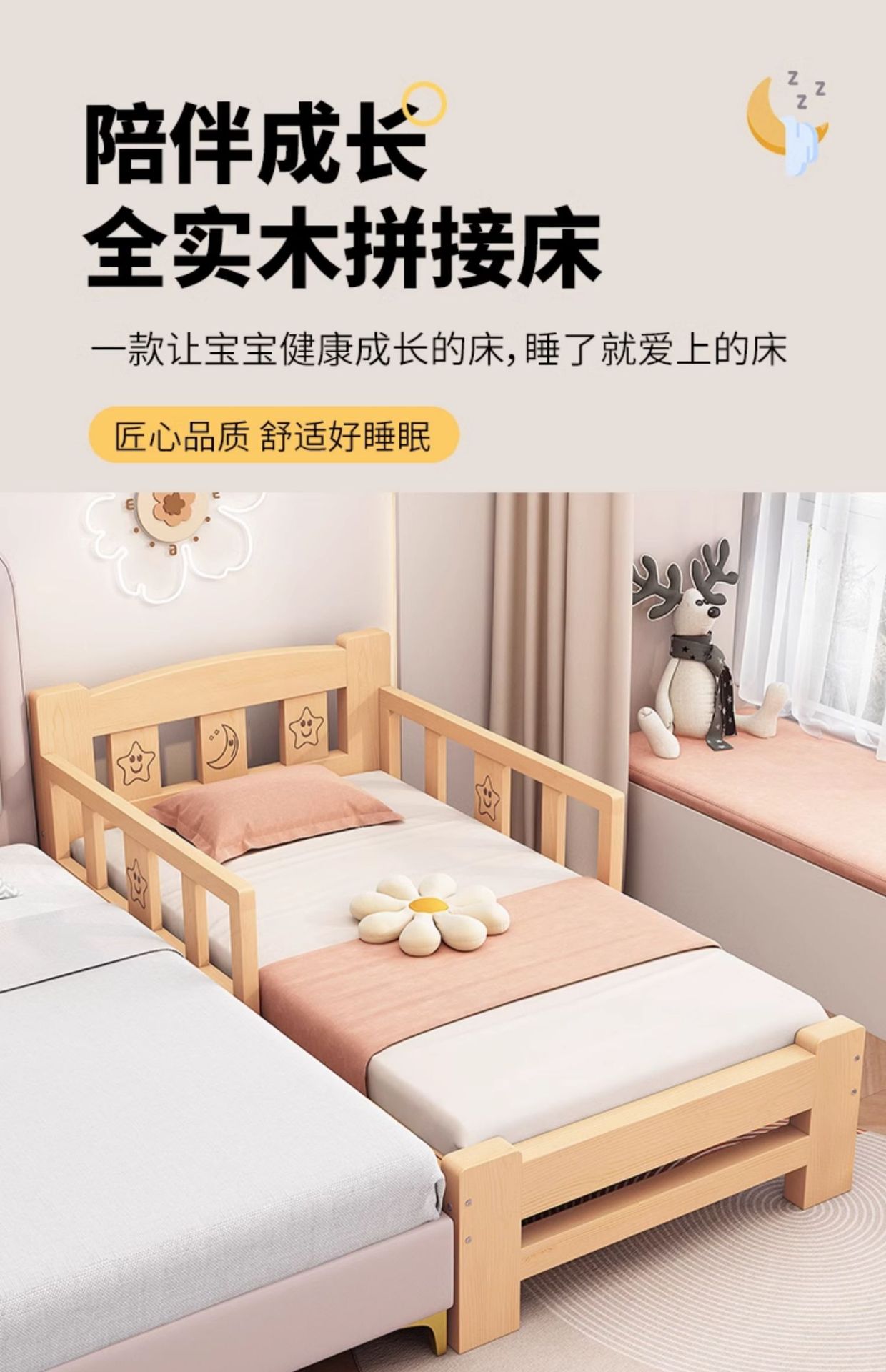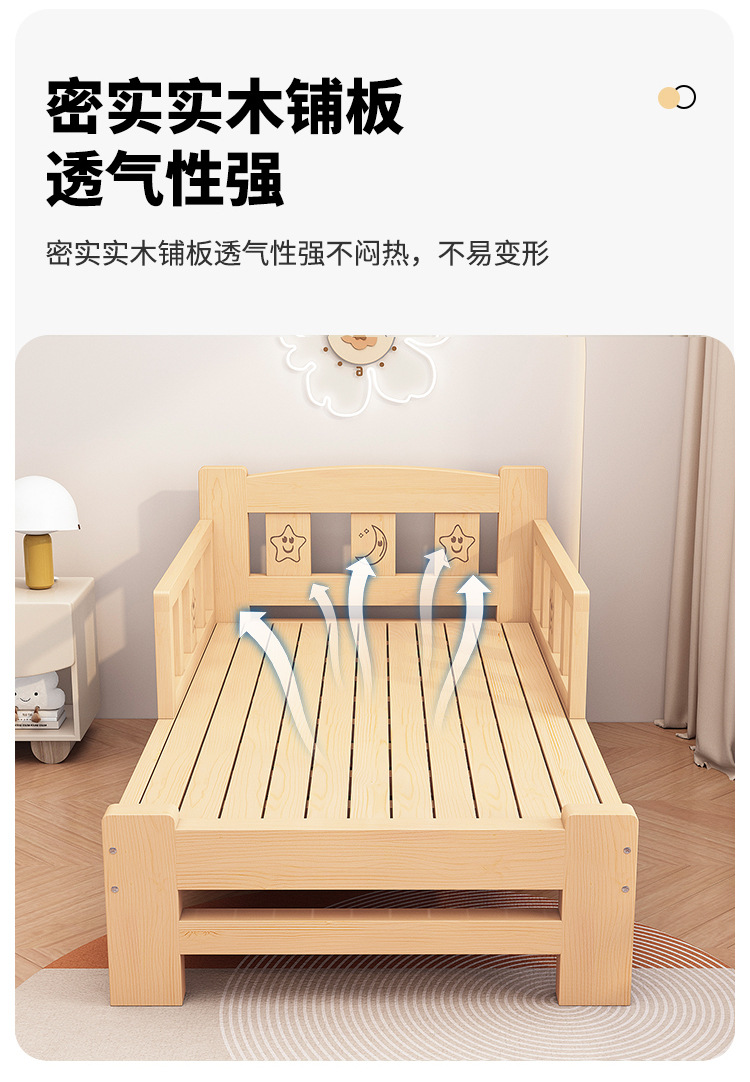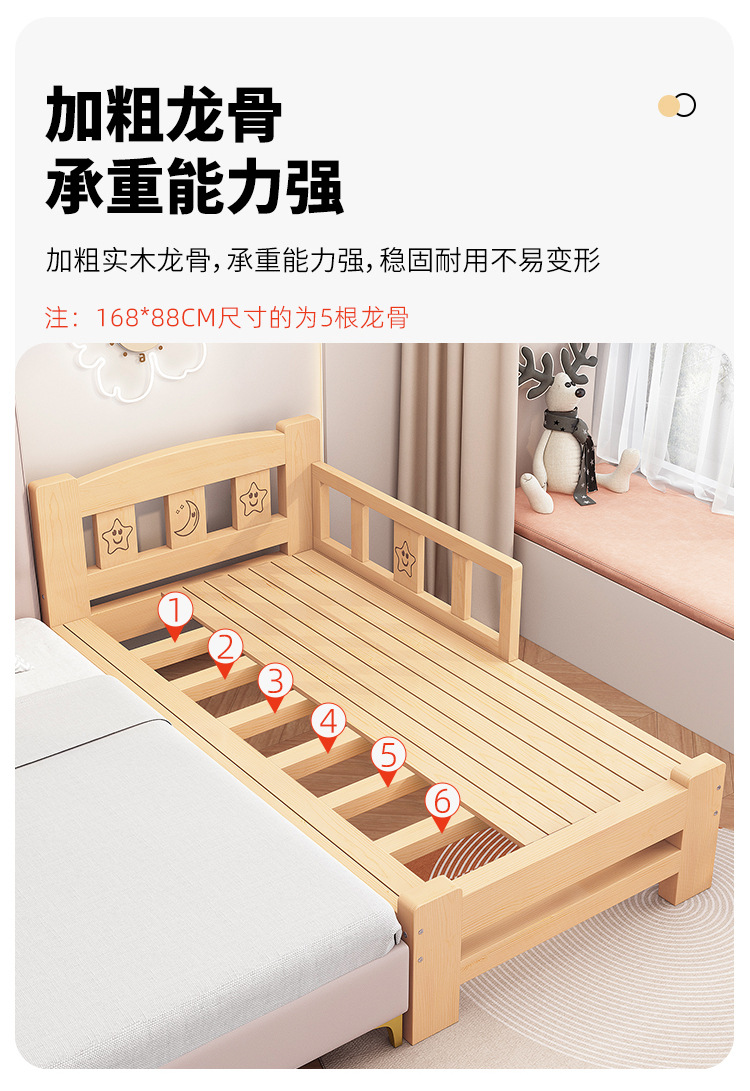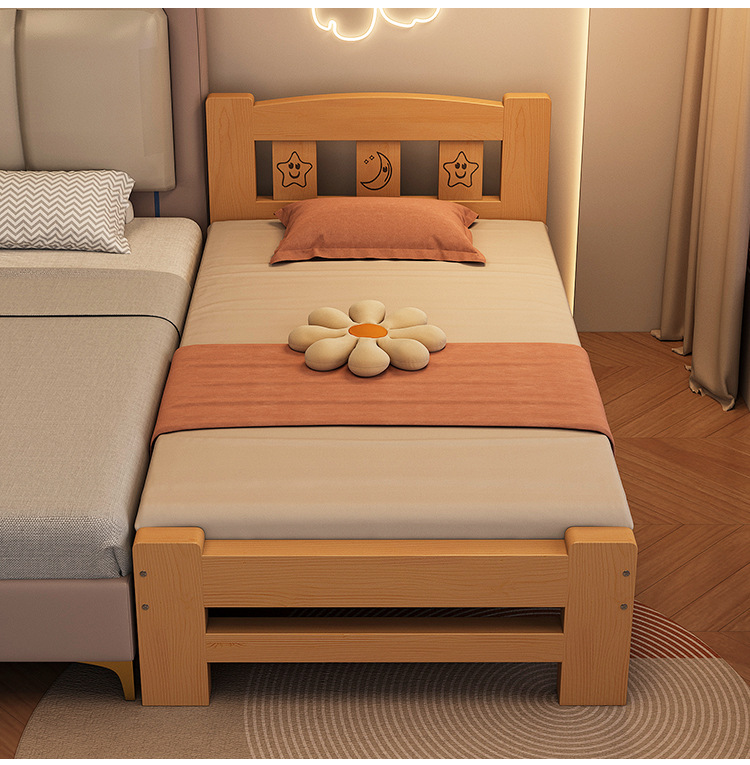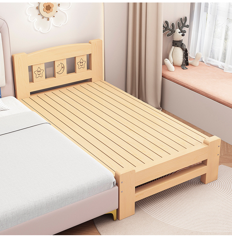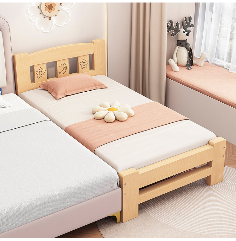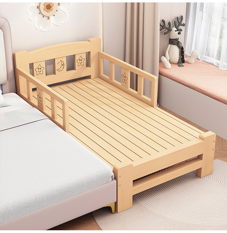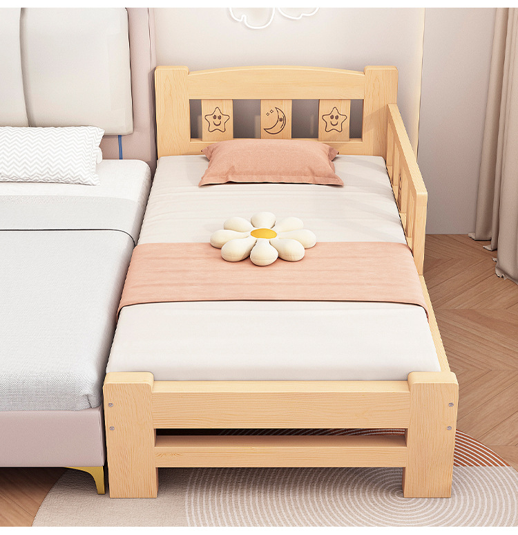 가드레일이 있는 원목 어린이 침대, 유아용 침대, 남아 및 여아용 공주 침대, 싱글 침대 옆 확장 접합 mω