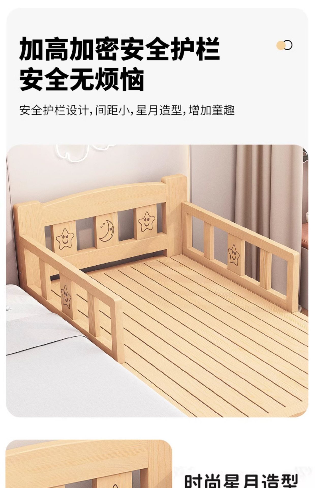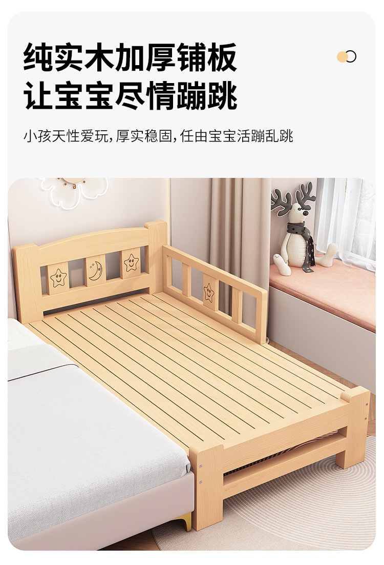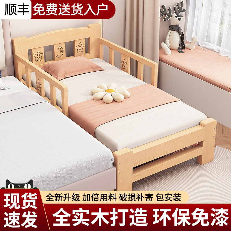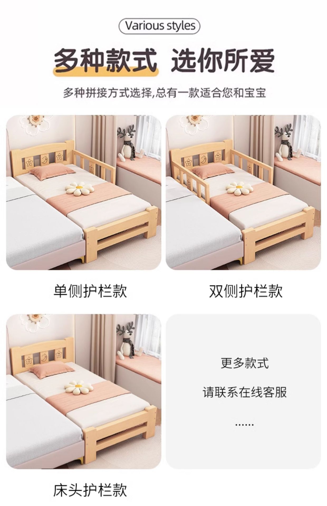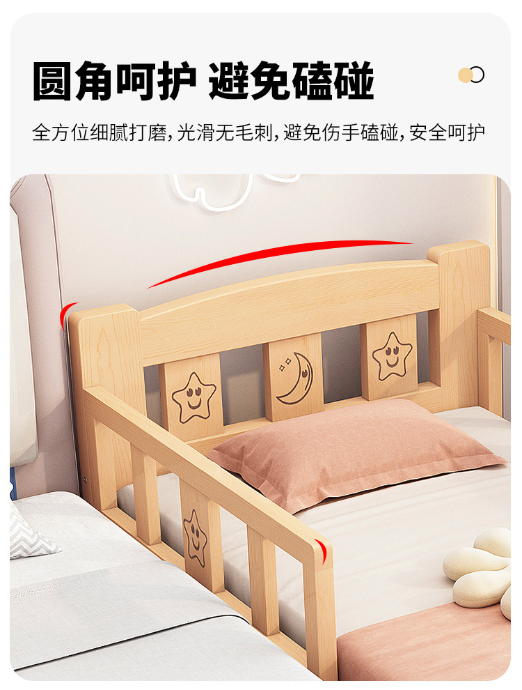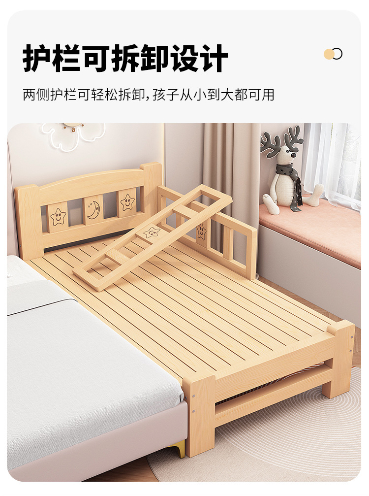 가드레일이 있는 원목 어린이 침대, 유아용 침대, 남아 및 여아용 공주 침대, 싱글 침대 옆 확장 접합 mω스토어 가기