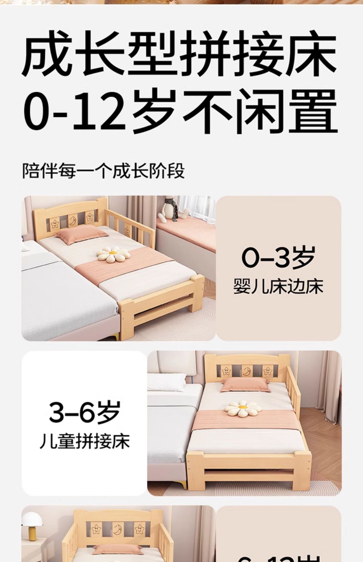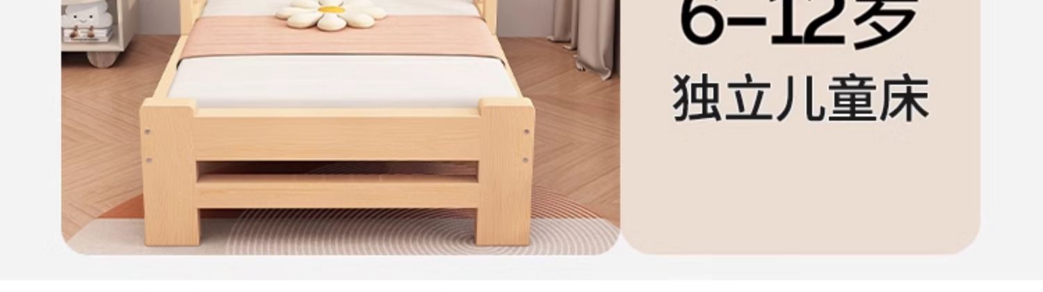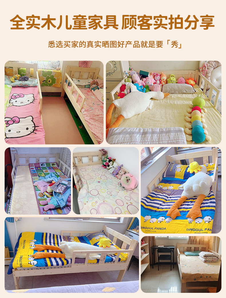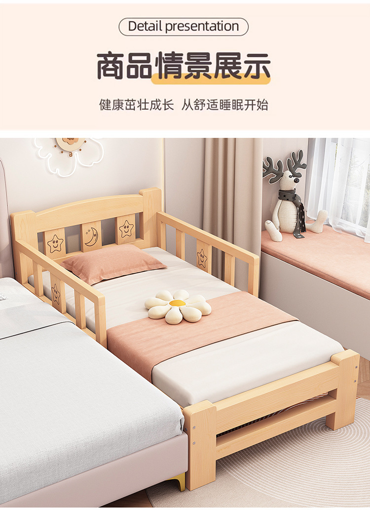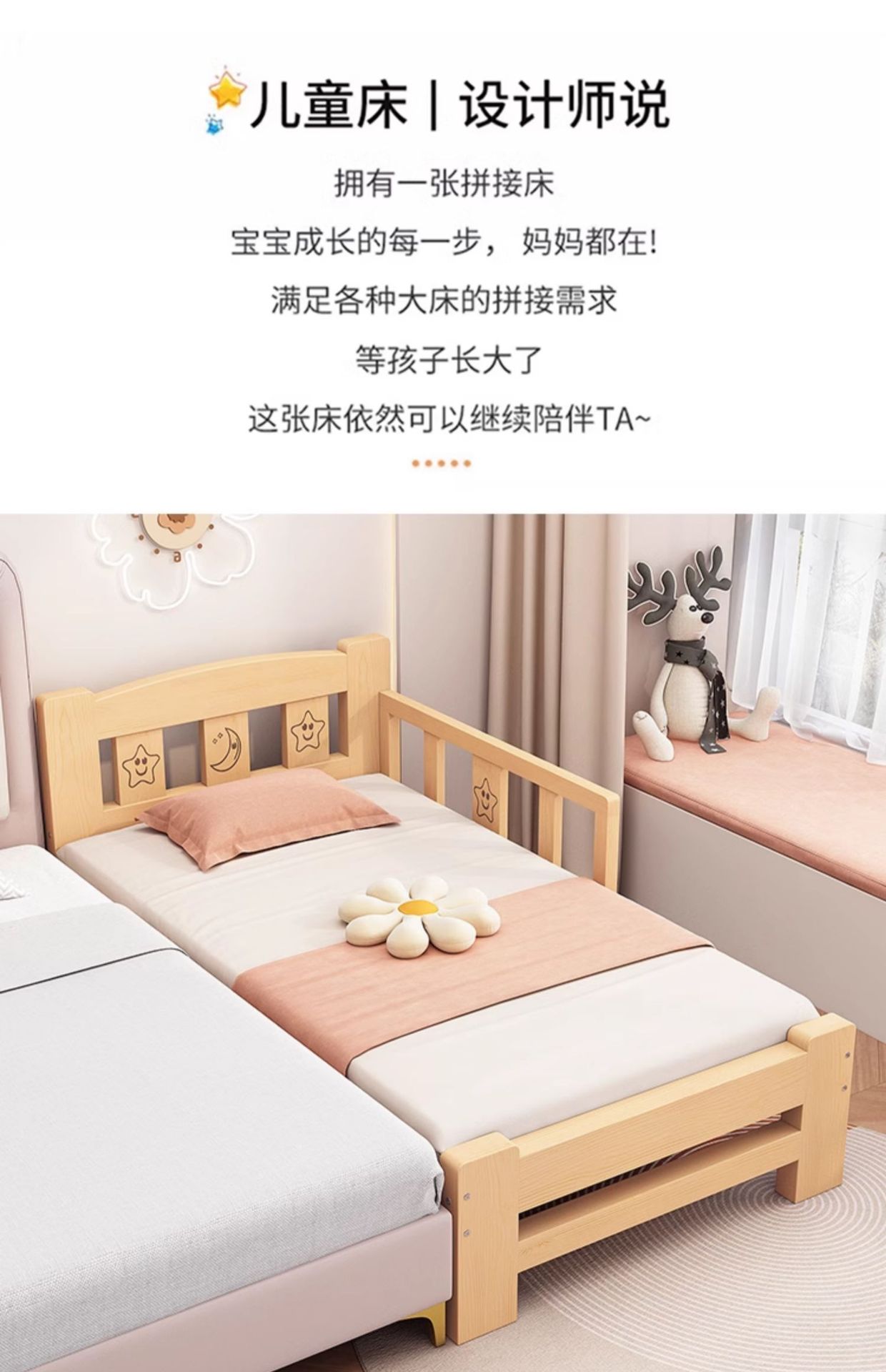가드레일이 있는 원목 어린이 침대, 유아용 침대, 남아 및 여아용 공주 침대, 싱글 침대 옆 확장 접합 mω스토어 가기