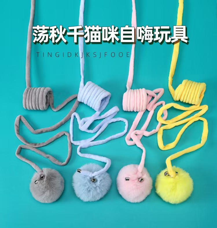 새로운 교수형 개폐식 탄성 로프 봄 토끼 모피 공 고양이 티저 스틱 셀프 하이 답답한 긁힘 방지 고양이 장난감 애완 동물 용품스토어 가기