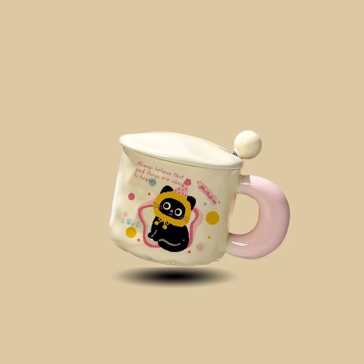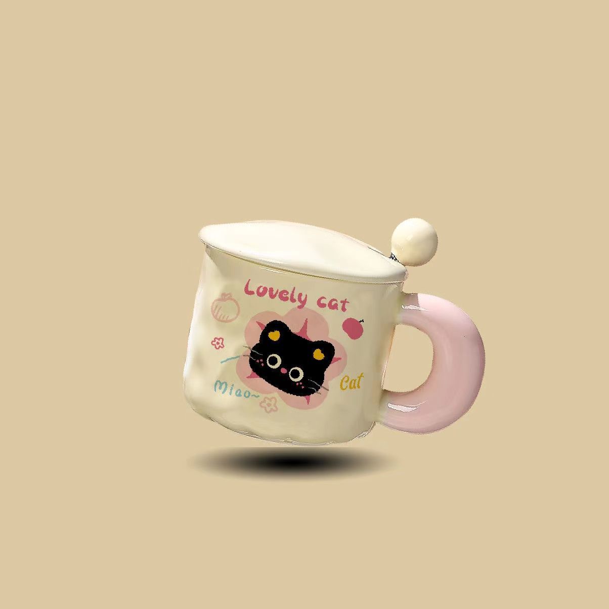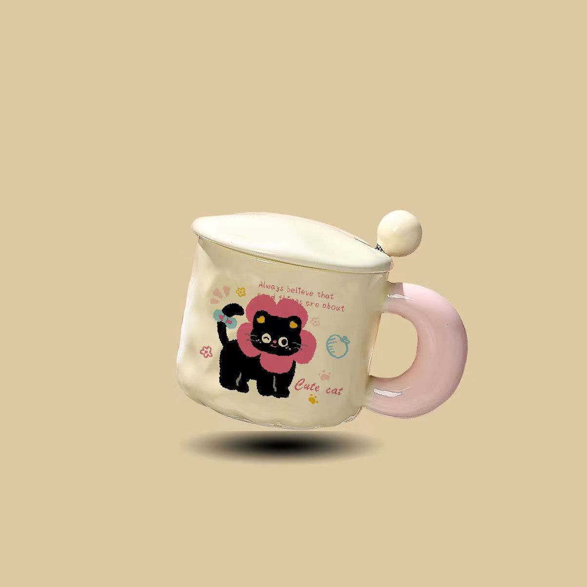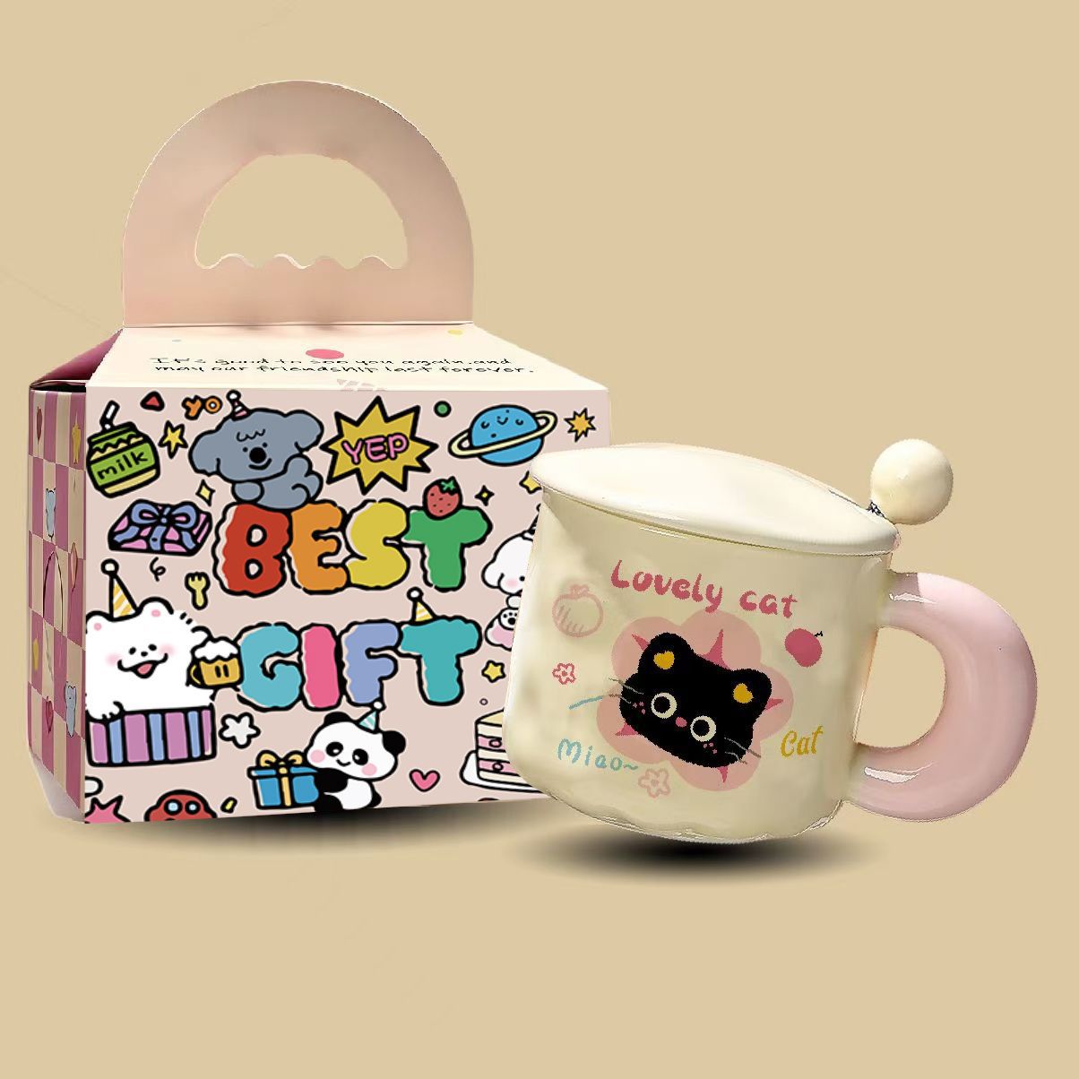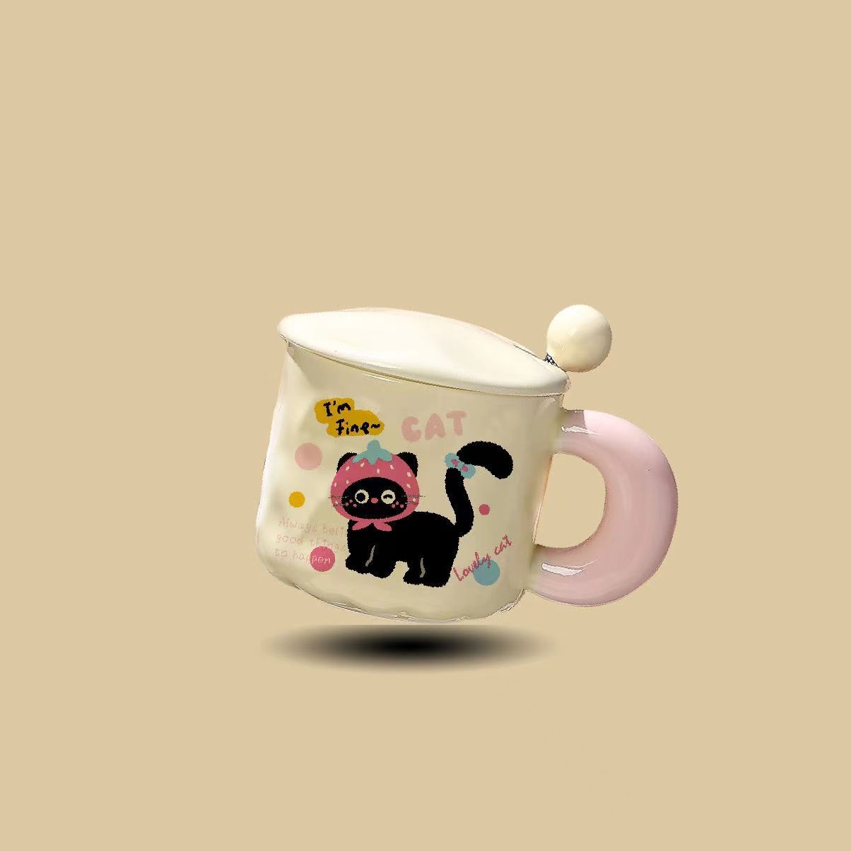 뚜껑과 스푼이 달린 귀여운 고양이 머그, 여자친구를 위한 멋진 머그, 생일 선물, 실용적인 결혼식 새 스타일