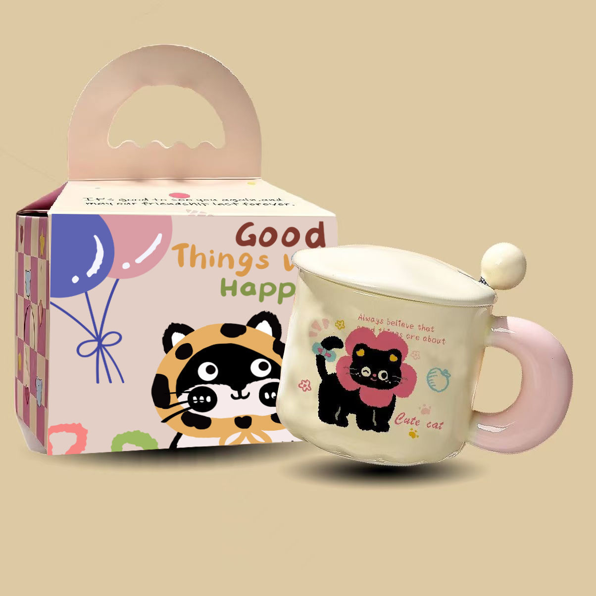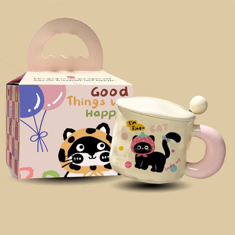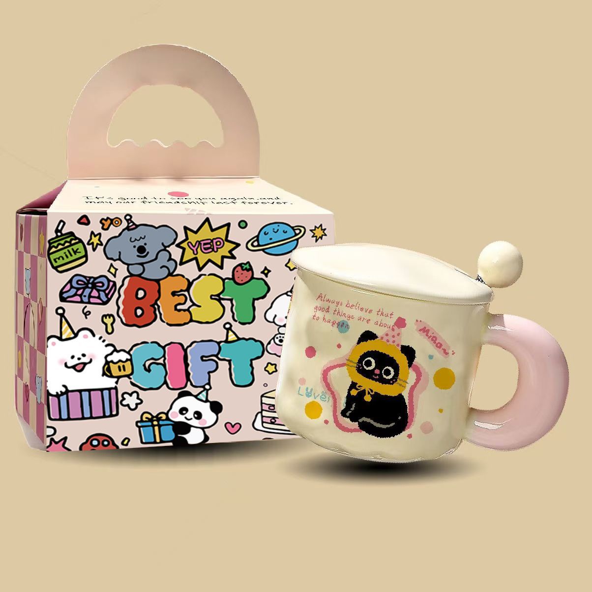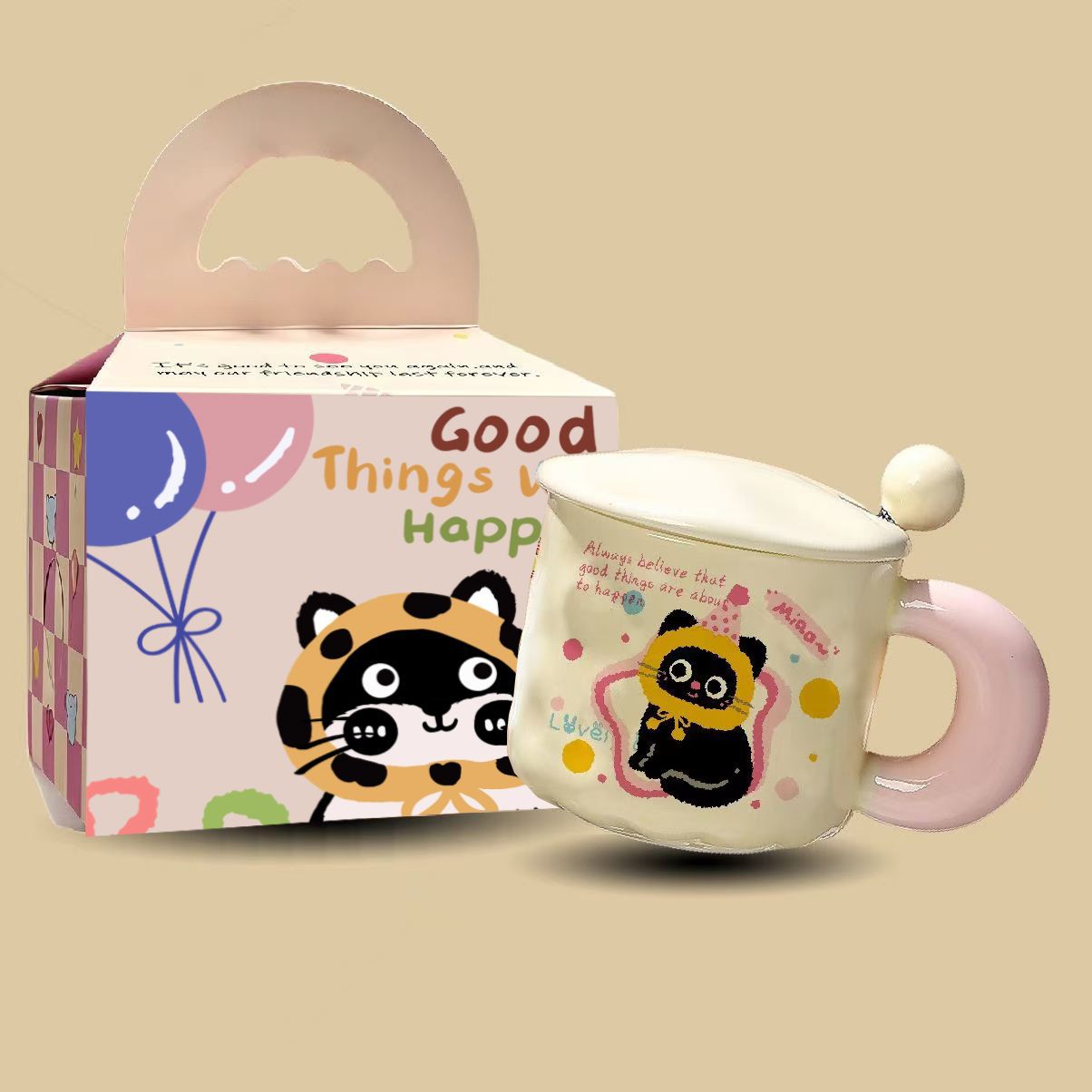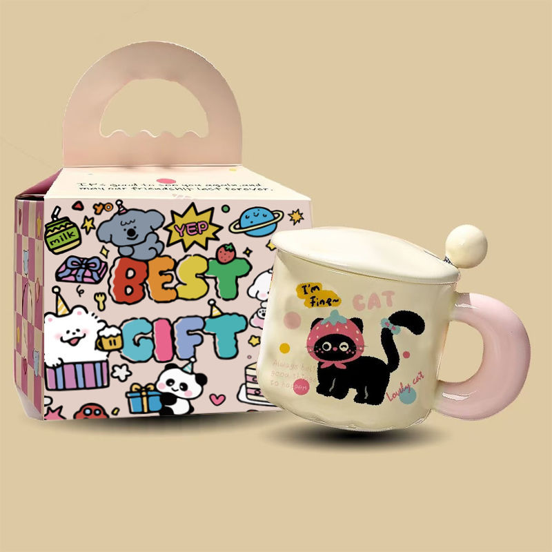 뚜껑과 스푼이 달린 귀여운 고양이 머그, 여자친구를 위한 멋진 머그, 생일 선물, 실용적인 결혼식 새 스타일스토어 가기