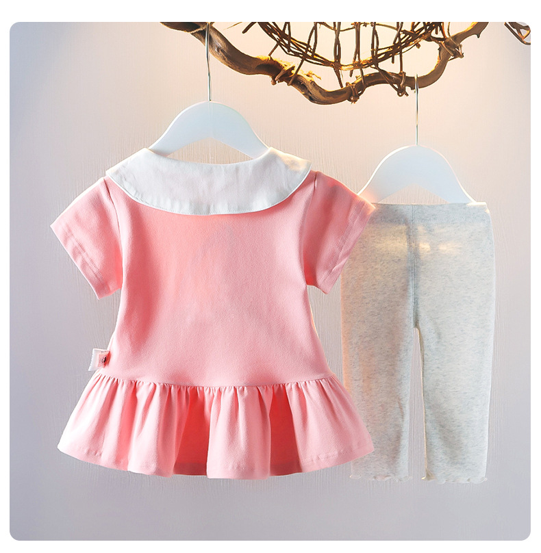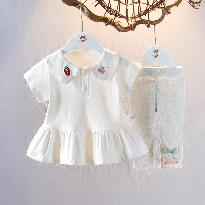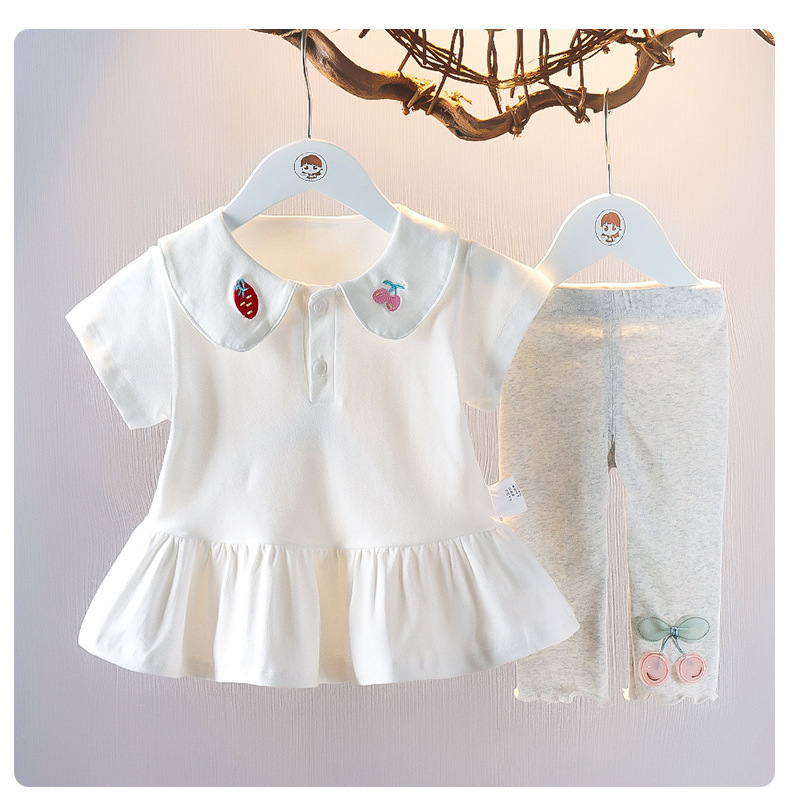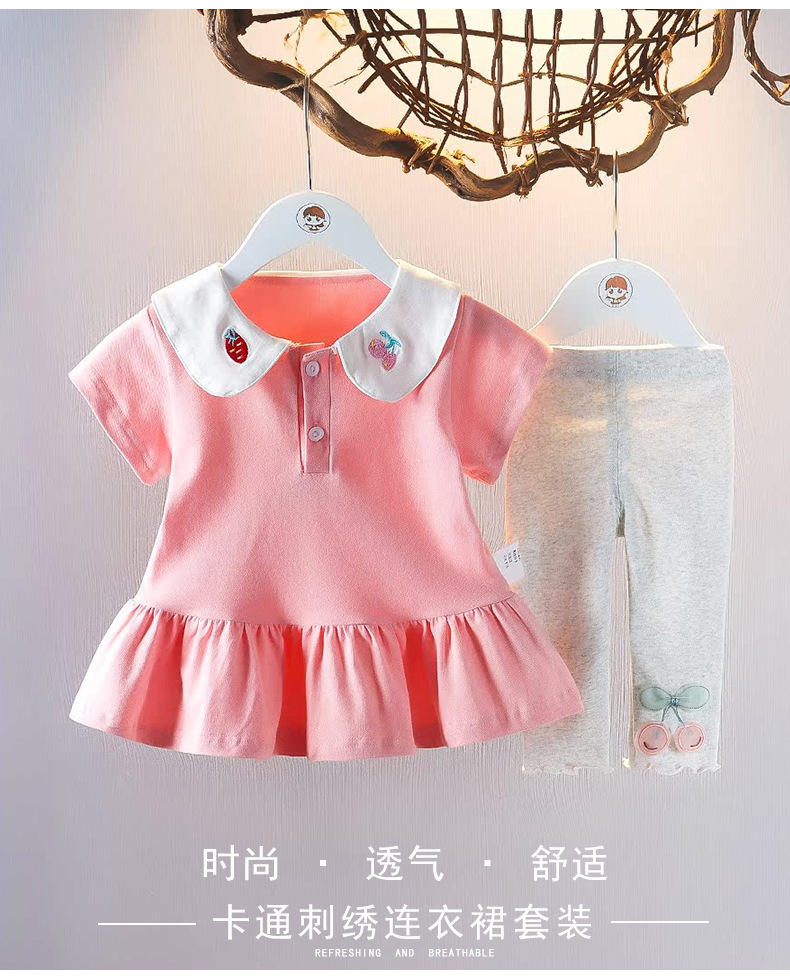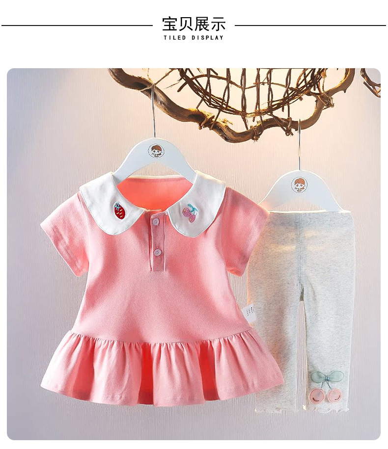 아기 소녀의 여름 인형 칼라 짧은 소매 폴로 스커트 투피스 세트 여름 얇은 아기 소녀의 스커트 어린이 세트 패션스토어 가기