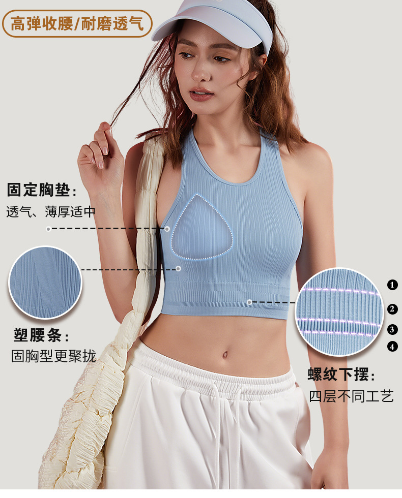 고강도 스포츠 속옷 여자 스레드 타이트 요가 뷰티 백 고정 컵 가슴 패드 통기성 피트니스 브래지어 조끼