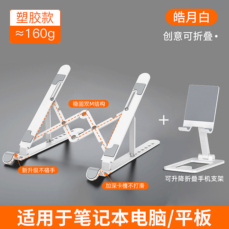 • [업그레이드 된 두꺼운 접이식] 플라스틱 노트북 스탠드 [안정적이고 흔들리지 않음] - 흰색 + 휴대폰 홀더