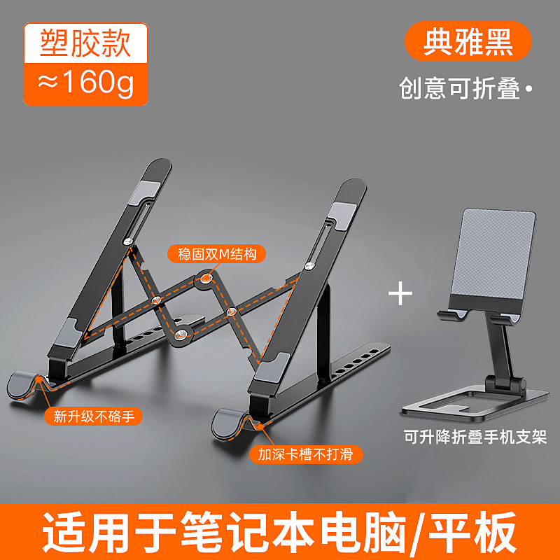 • [업그레이드 된 두꺼운 접이식] 플라스틱 노트북 스탠드 [안정적이고 흔들리지 않음] - 검정색 + 휴대폰 홀더