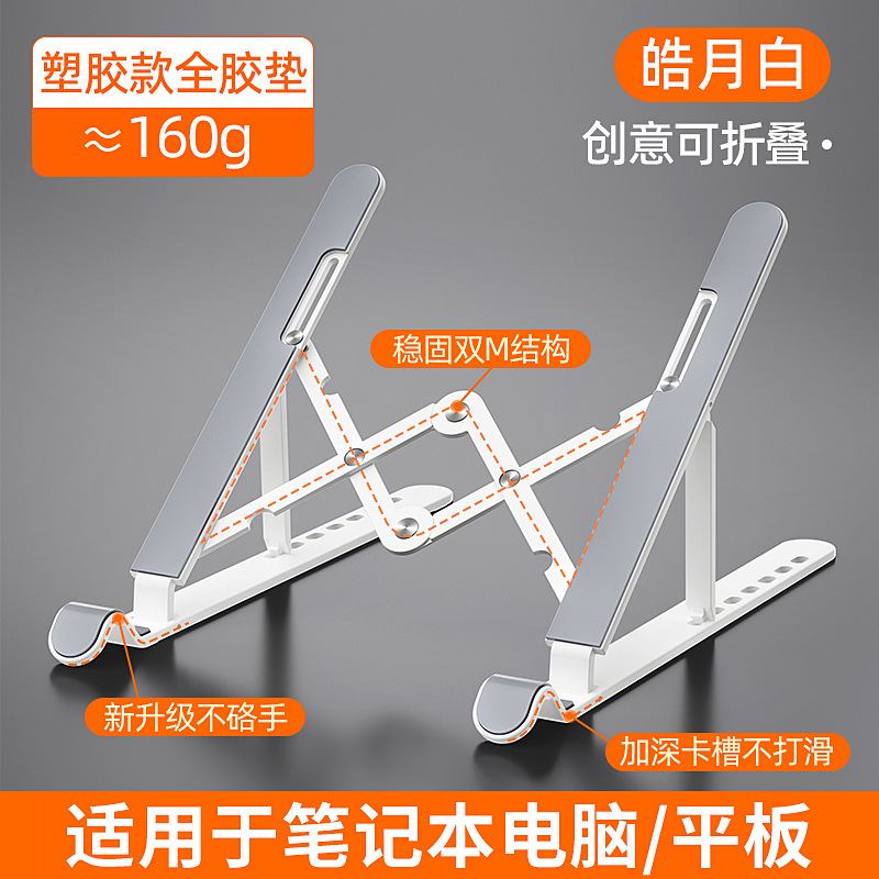 • [업그레이드된 두꺼워지고 접을 수 있는] 플라스틱 노트북 스탠드 [안정적이고 흔들리지 않음] - 흰색 - 전체 고무 패드.