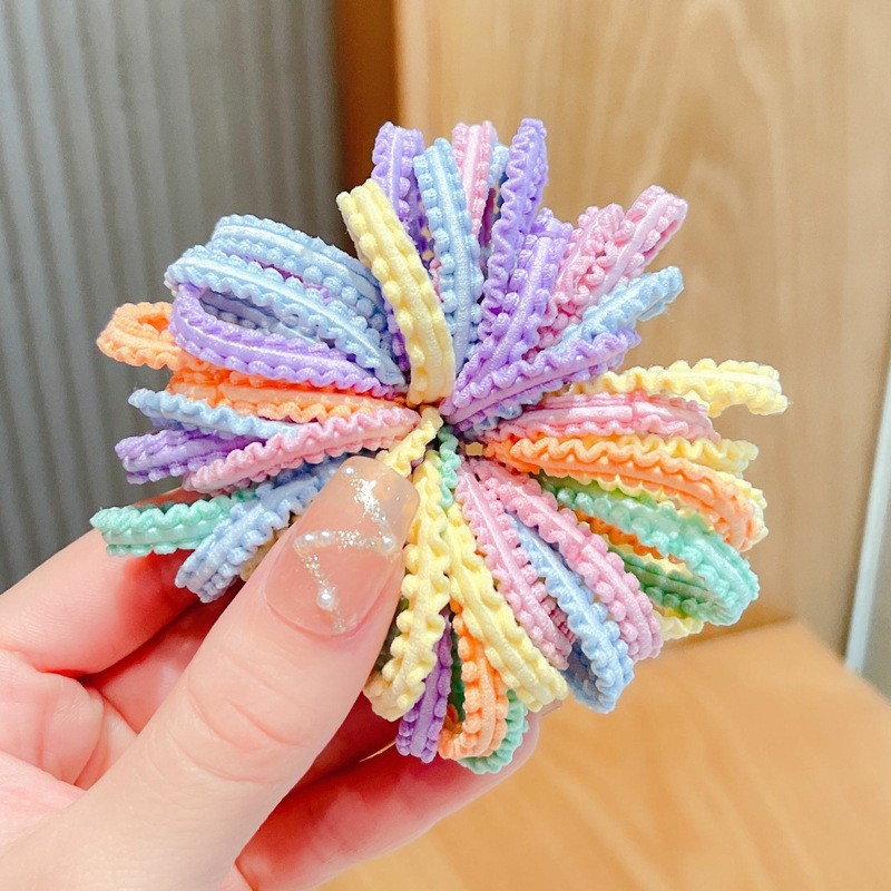 어린 소녀의 고무줄 머리띠, 간단한 포니테일, 두꺼운 레이스, 작은 머리끈, 캔디 컬러 머리끈