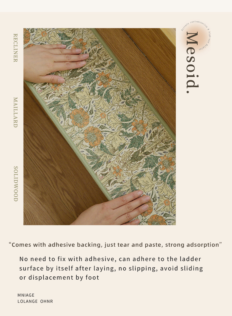 국경 간 계단 단계 매트 접착제가없는 자체 접착 Dornier 인쇄 미끄럼 방지 단단한 나무 바닥 매트 반복 사용