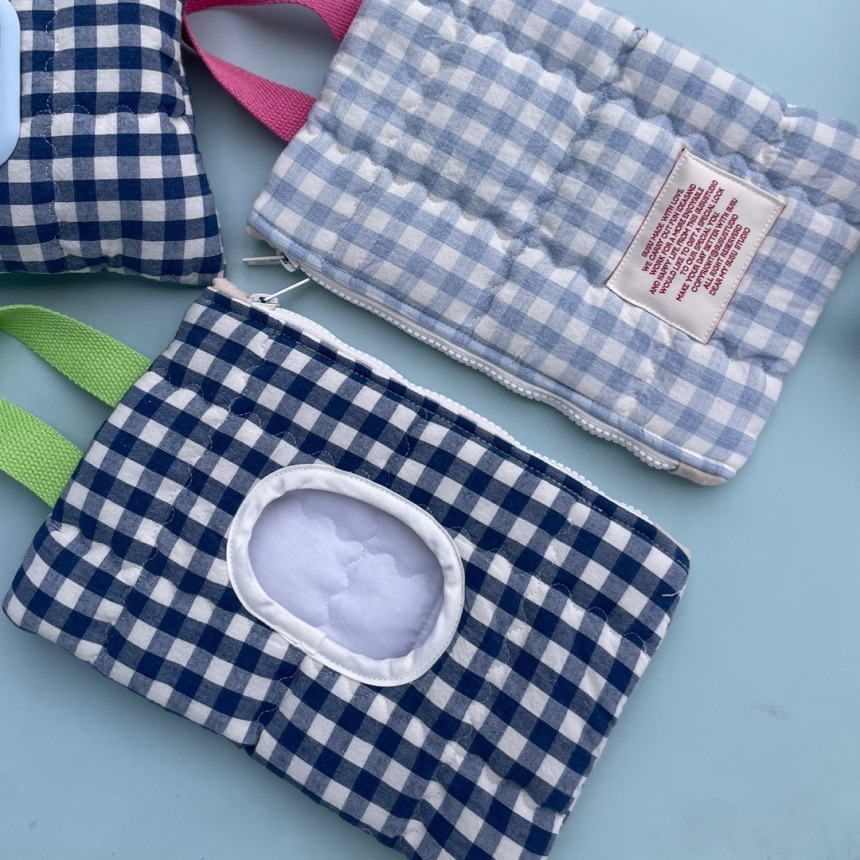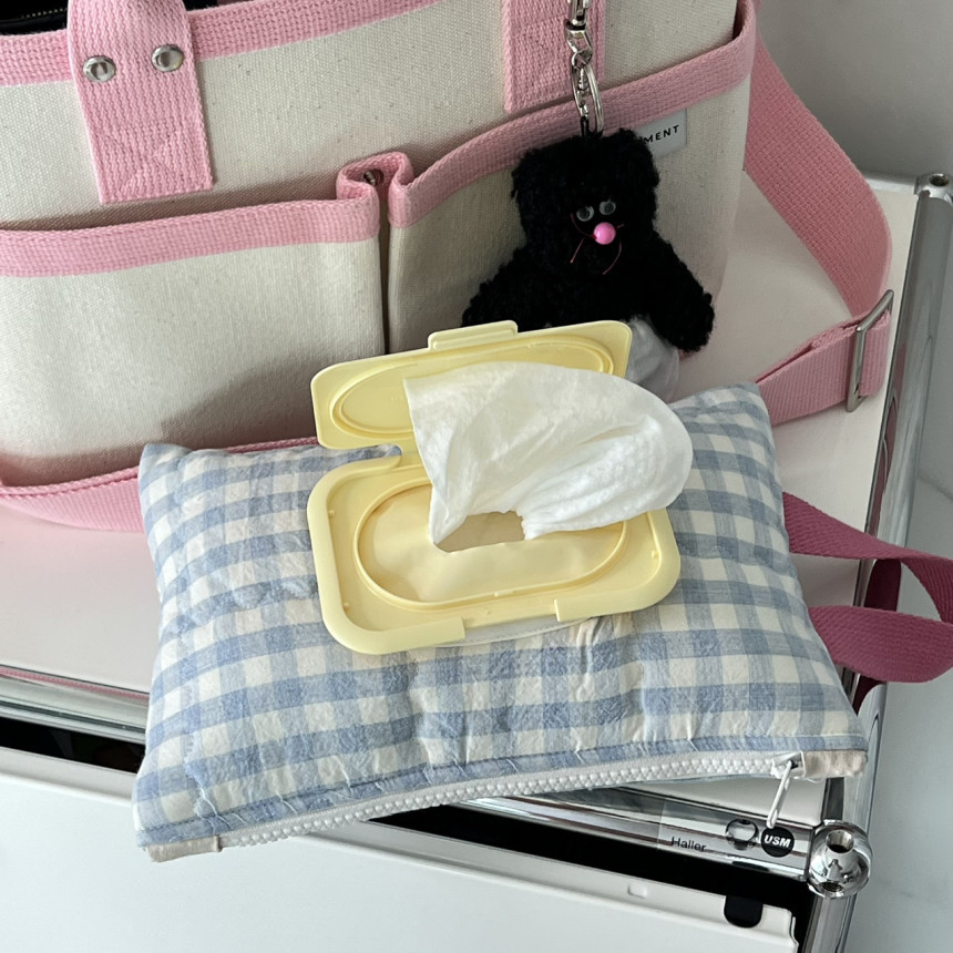 • 파란색 격자 무늬 물티슈 가방