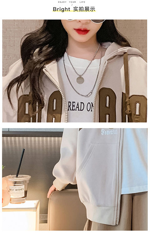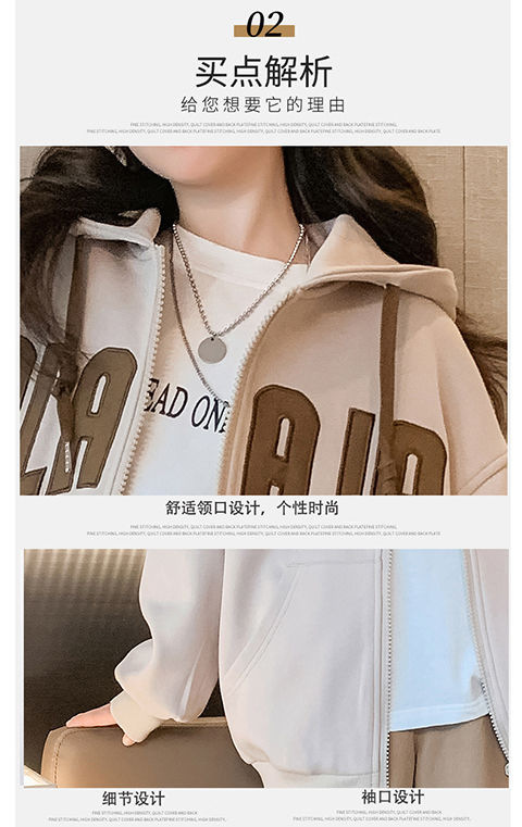 여자 코트 2024 새로운 가을과 겨울 얇은 후드 지퍼 스웨터 여성용 중추과 겨울 따뜻한 올매치 트렌디스토어 가기
