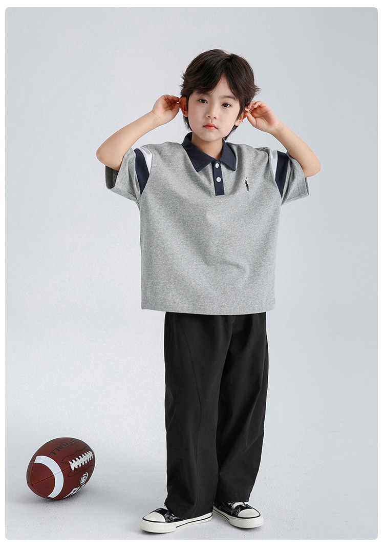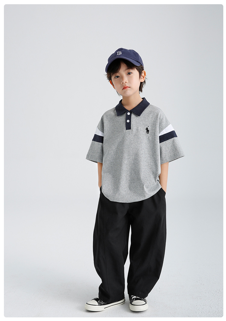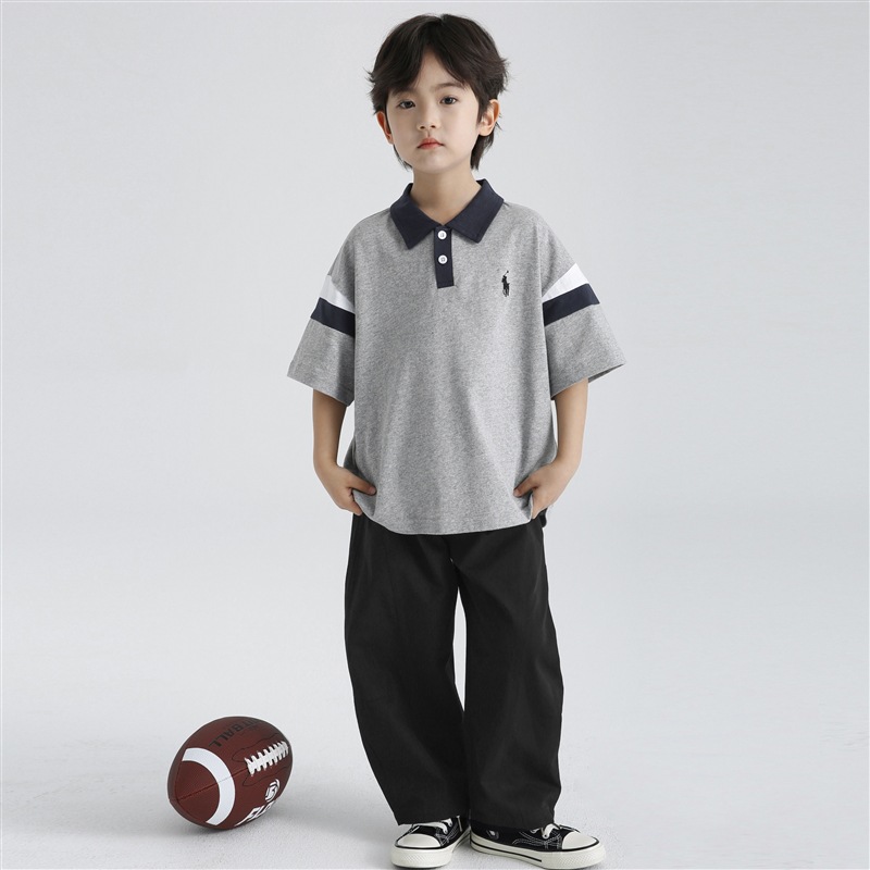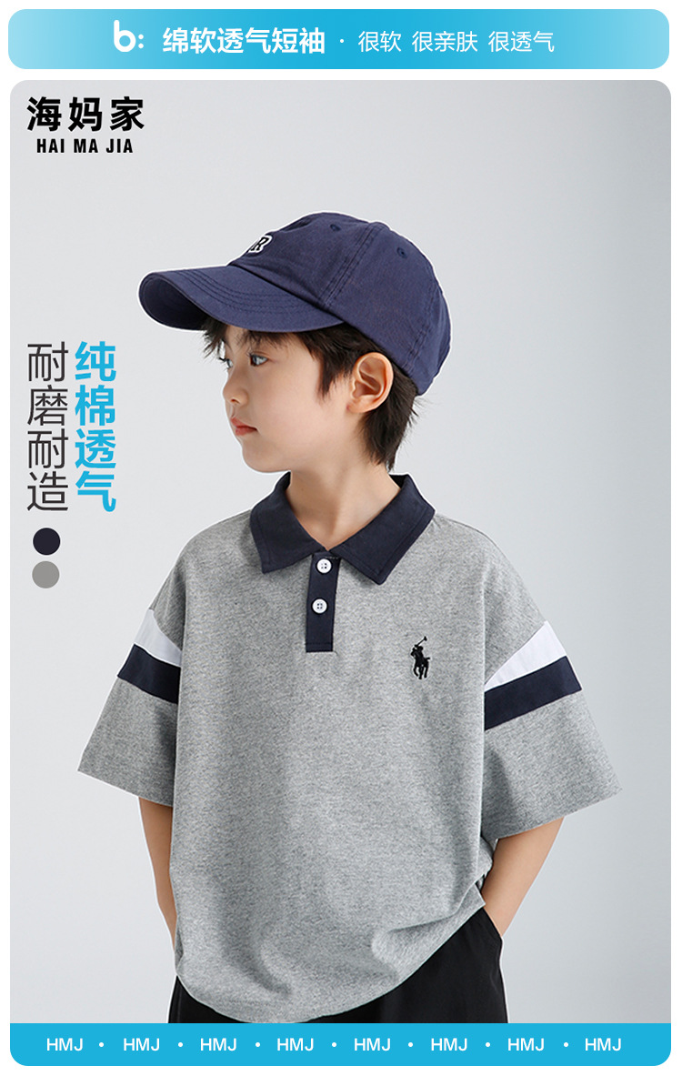 Haima의 2025 년 여름 새 소년 트렌디 브랜드 반팔 티셔츠 POLO 셔츠 여름 옷 큰 어린이를위한 순수 면 한국 스타일스토어 가기