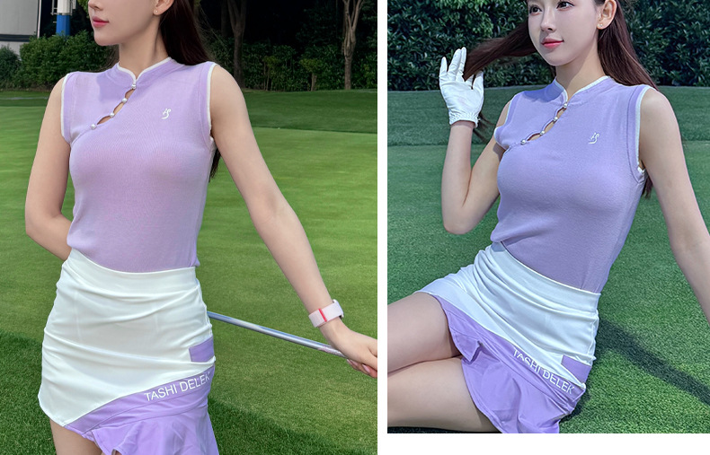 여성용 여름 골프웨어, 신축성 있고 속건성, 슬림핏, 민소매 탑, 노출 방지 주름 짧은 스커트스토어 가기