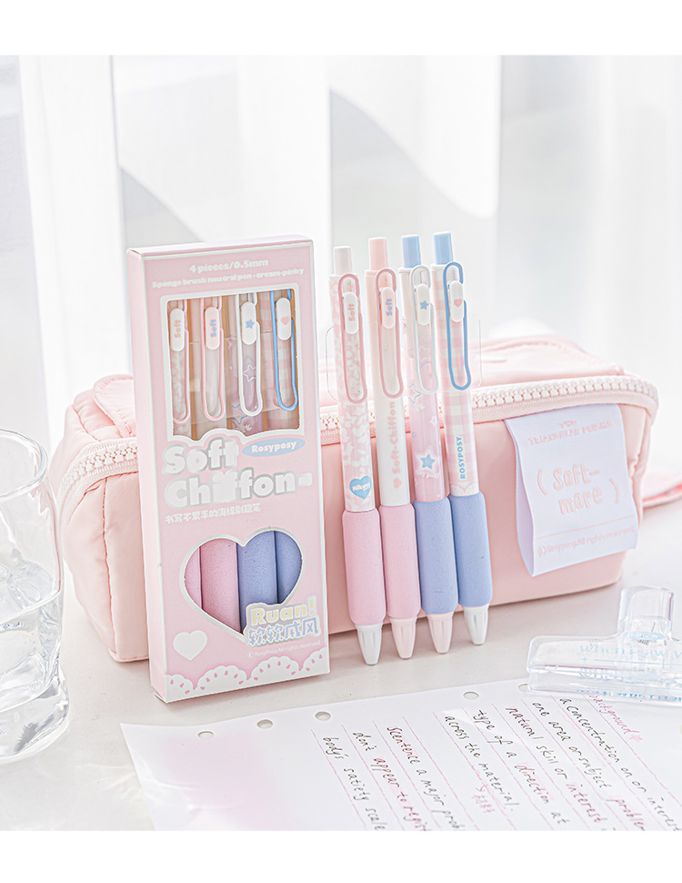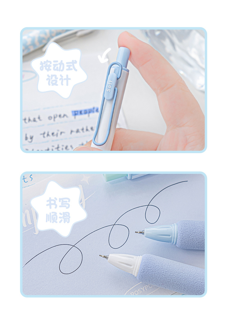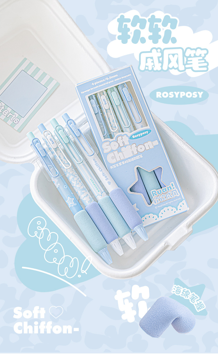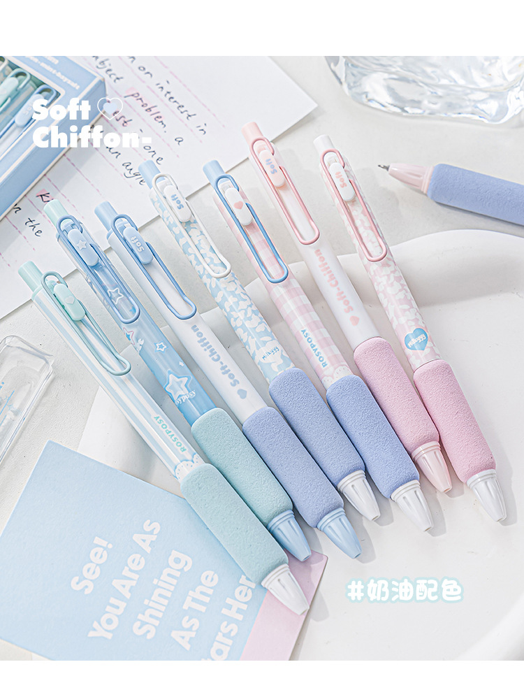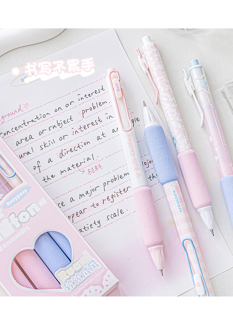 RosyPosy 스펀지 젤 펜 고급스러운 심플 소프트 펜 클라우드 그립 ST 블랙 리필 학생 워터펜 세트