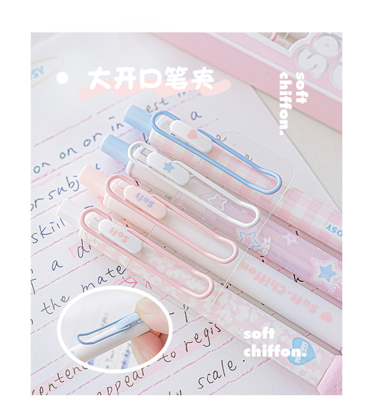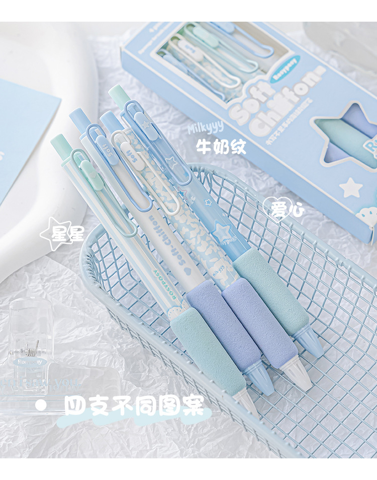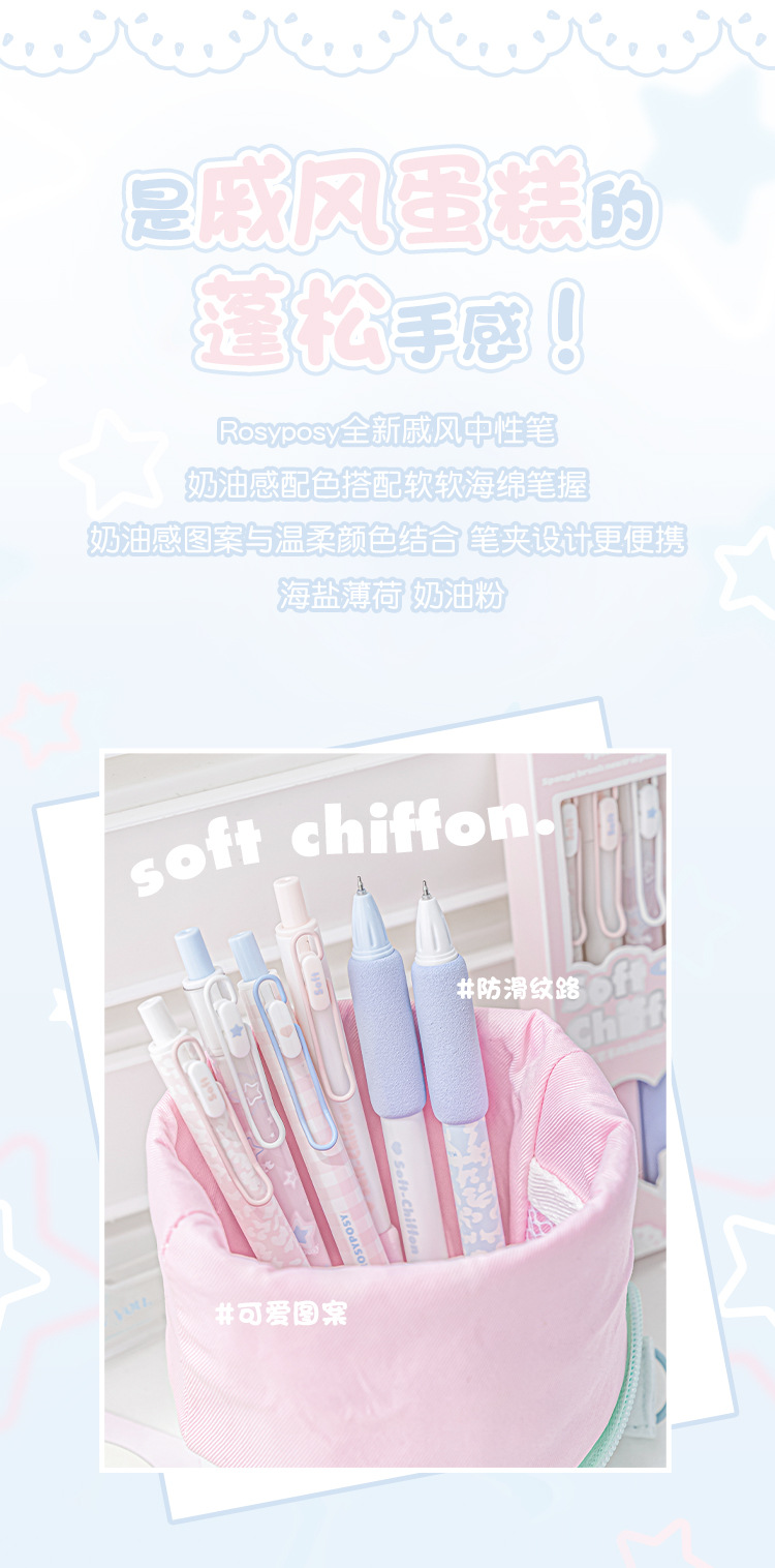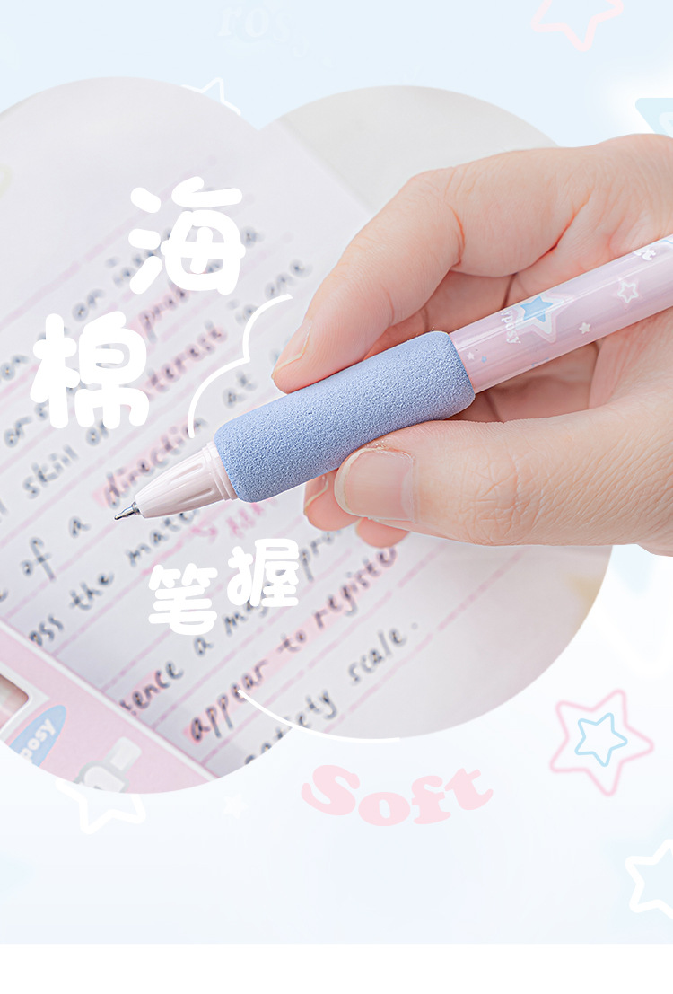RosyPosy 스펀지 젤 펜 고급스러운 심플 소프트 펜 클라우드 그립 ST 블랙 리필 학생 워터펜 세트